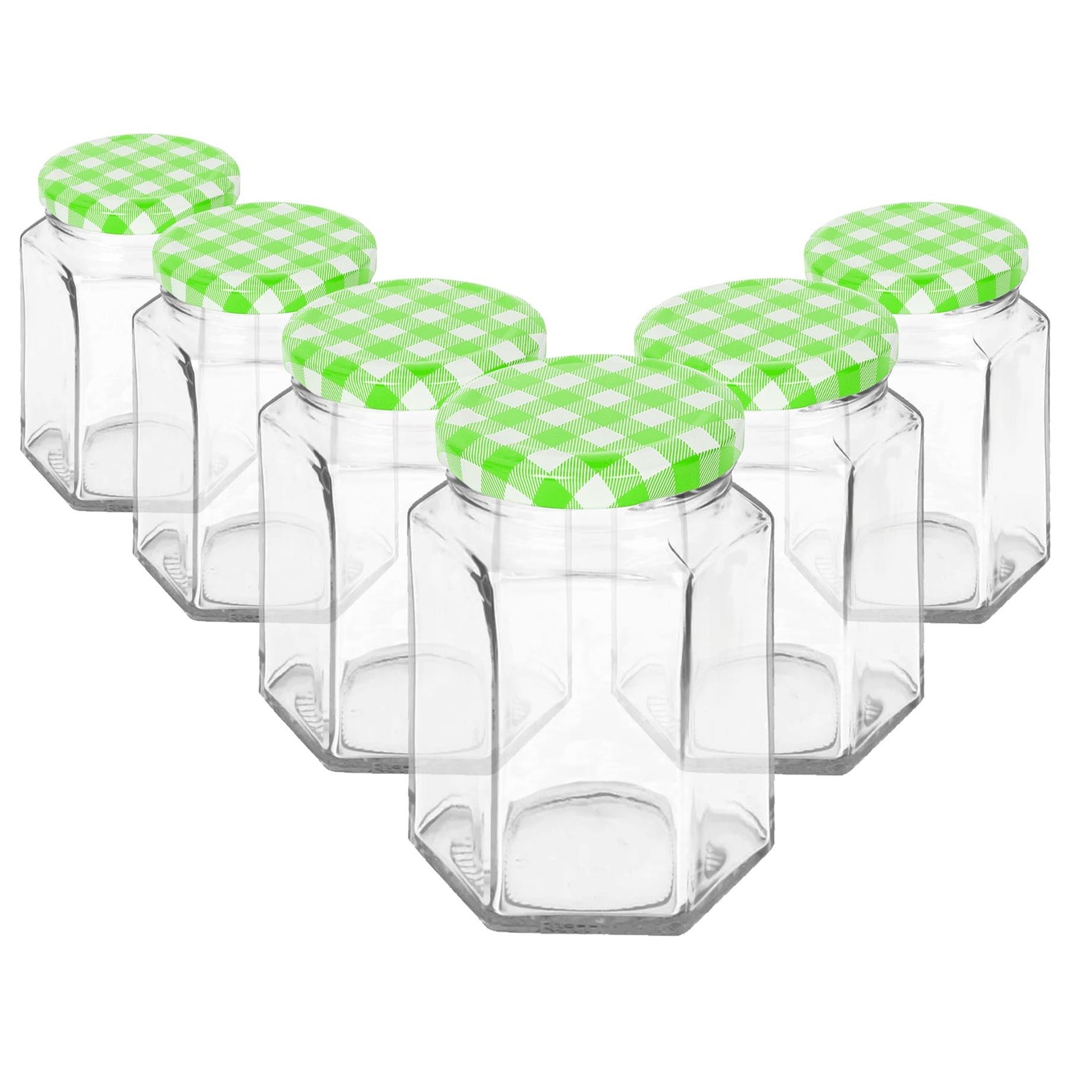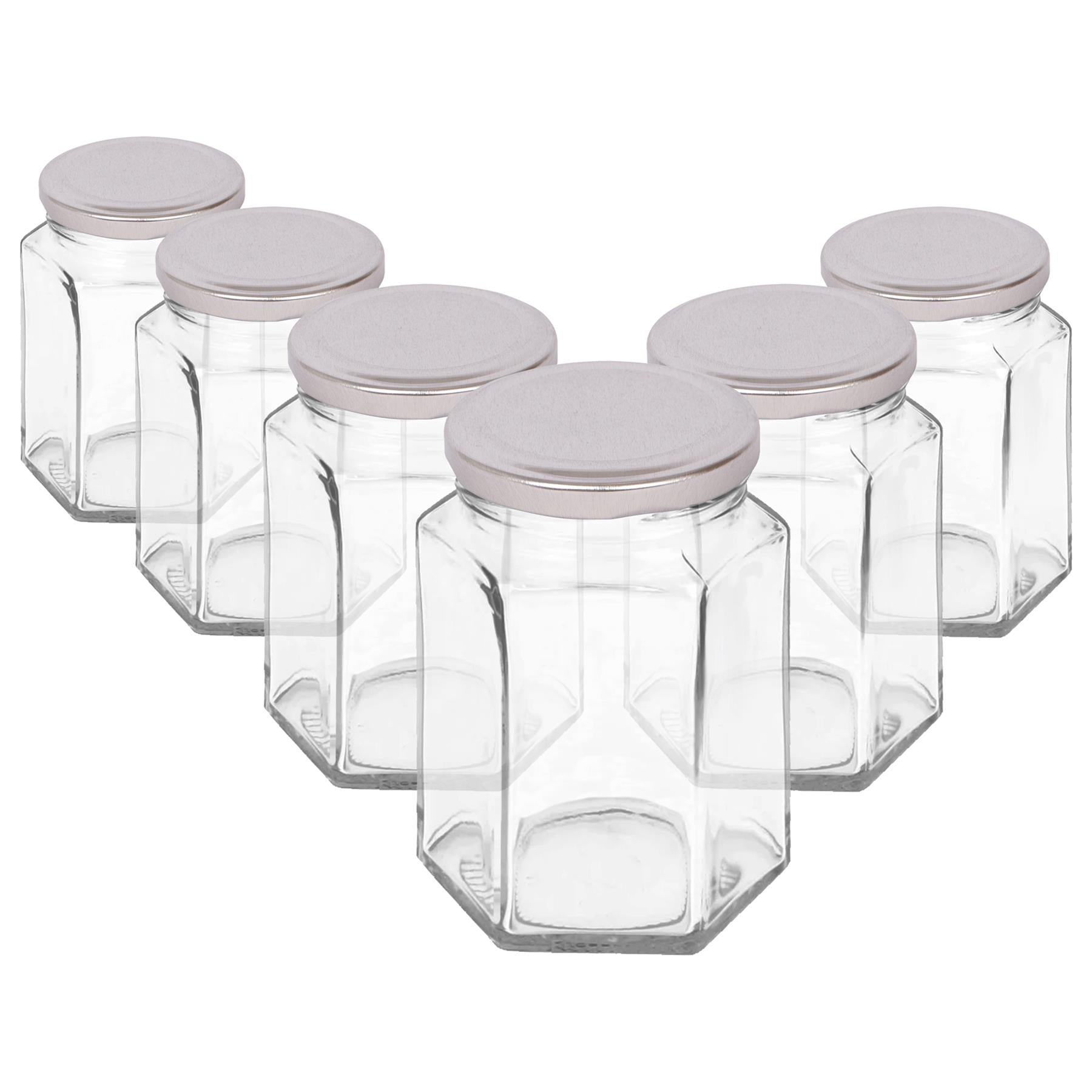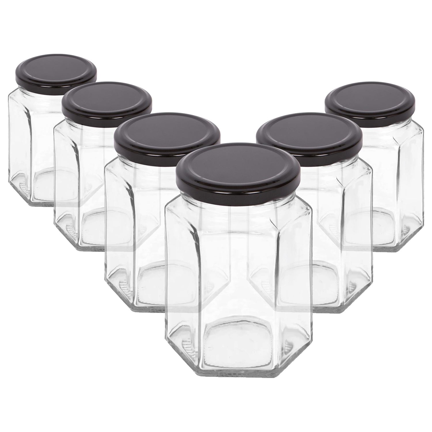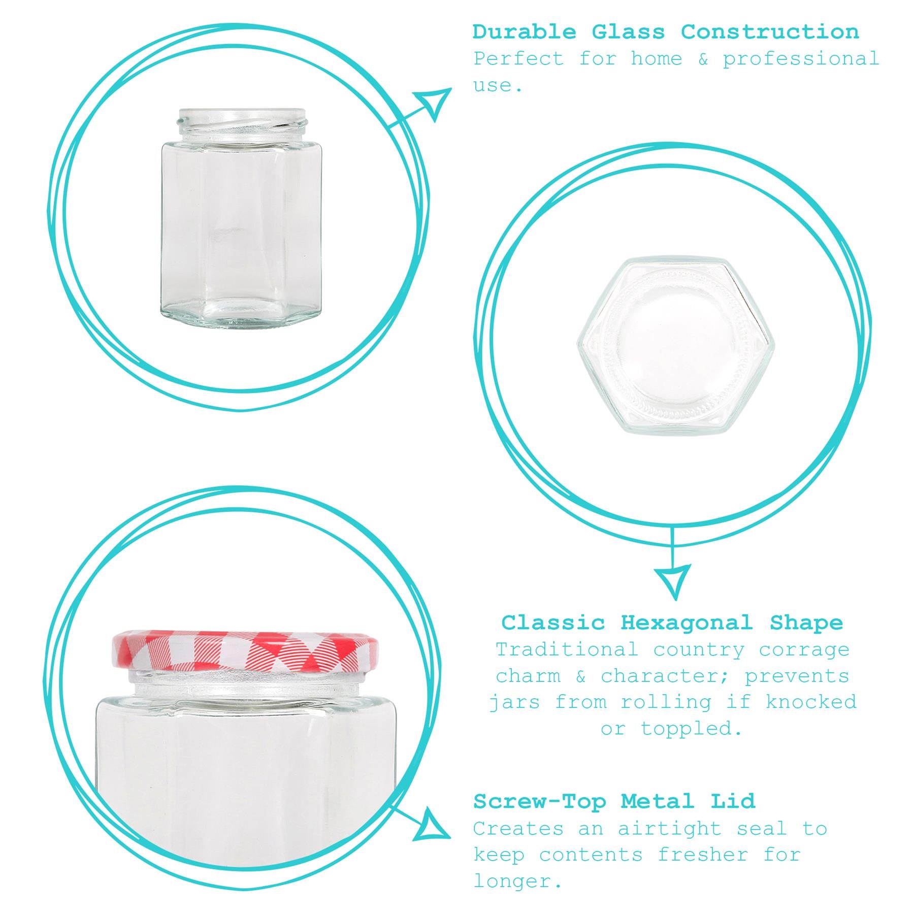 250ml Hexagonal Glass Jam Jars with Lids - Pack of Six
