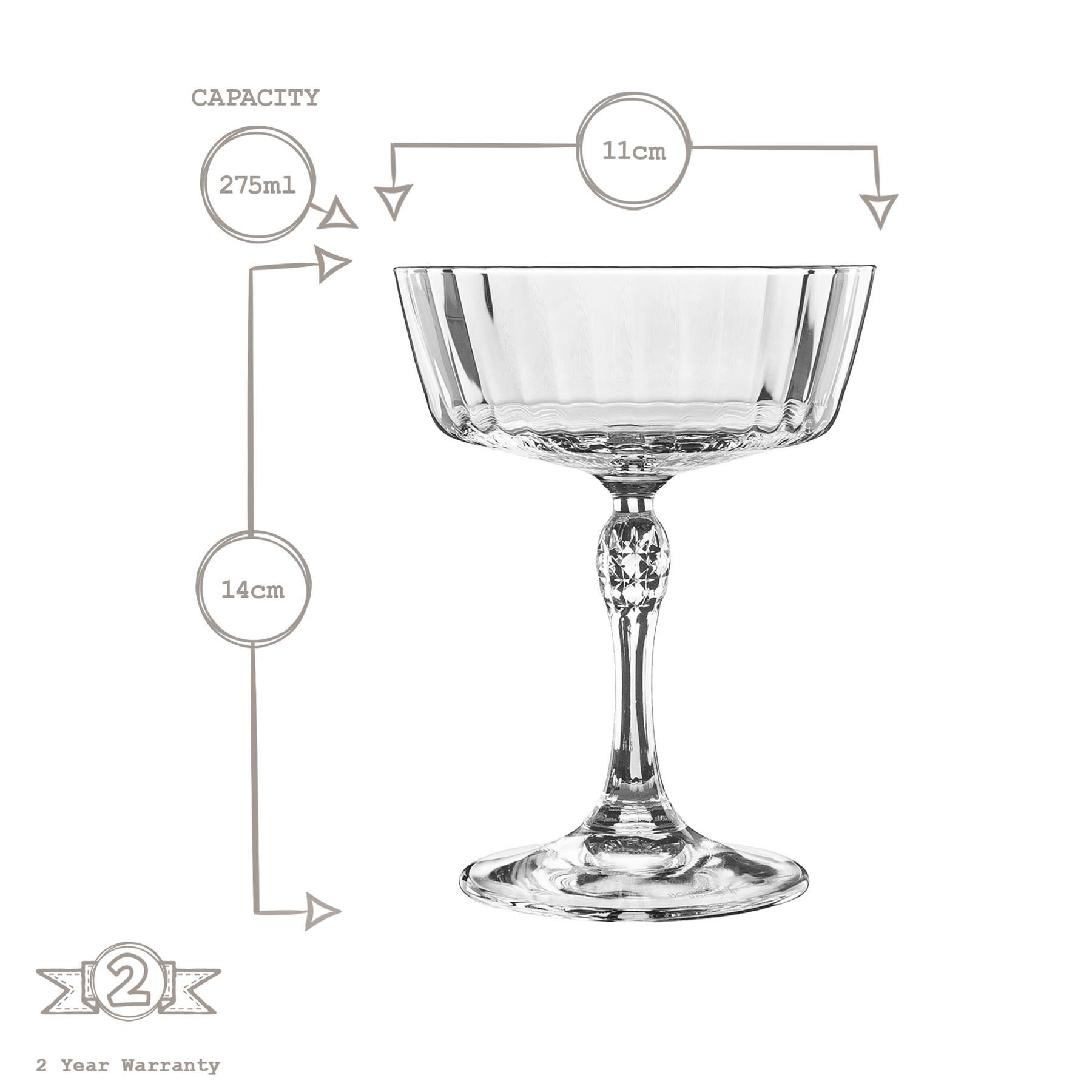 • 275ml capacity - generous for champagne cocktails, Clover Clubs and desserts in glass.