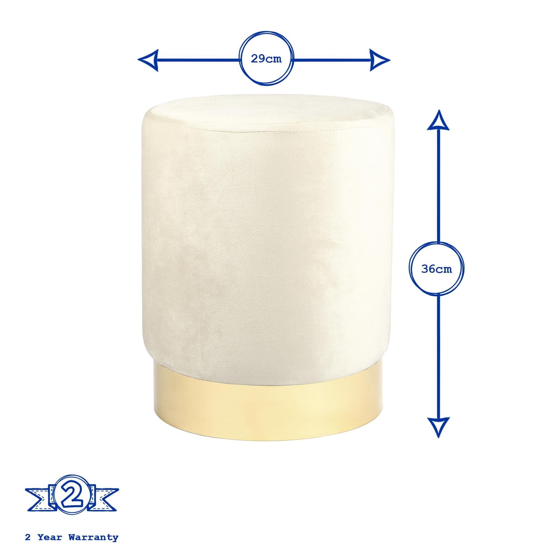 A layer of foam padding covers the stool, ensuring lasting comfort and the soft velvet covering creates the ultimate level of luxury. The petite shape makes this stool ideal for tucking under a desk or vanity table, creating a convenient space-saver.