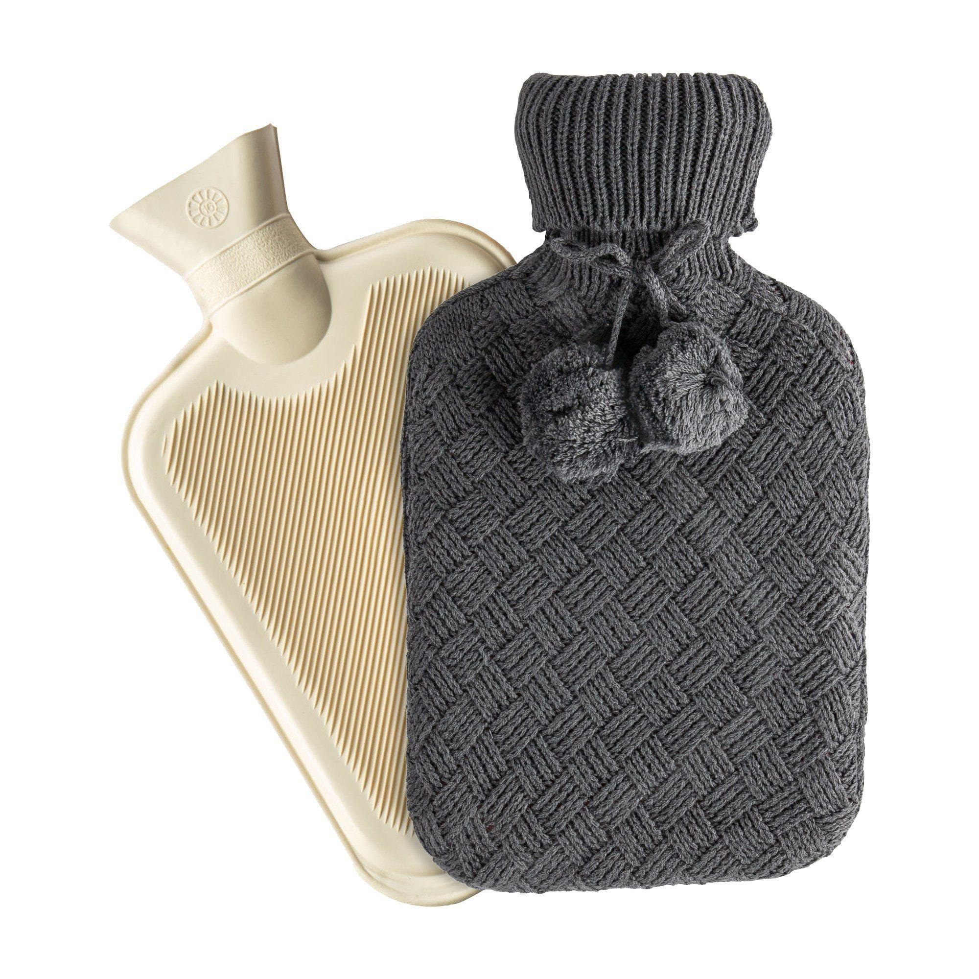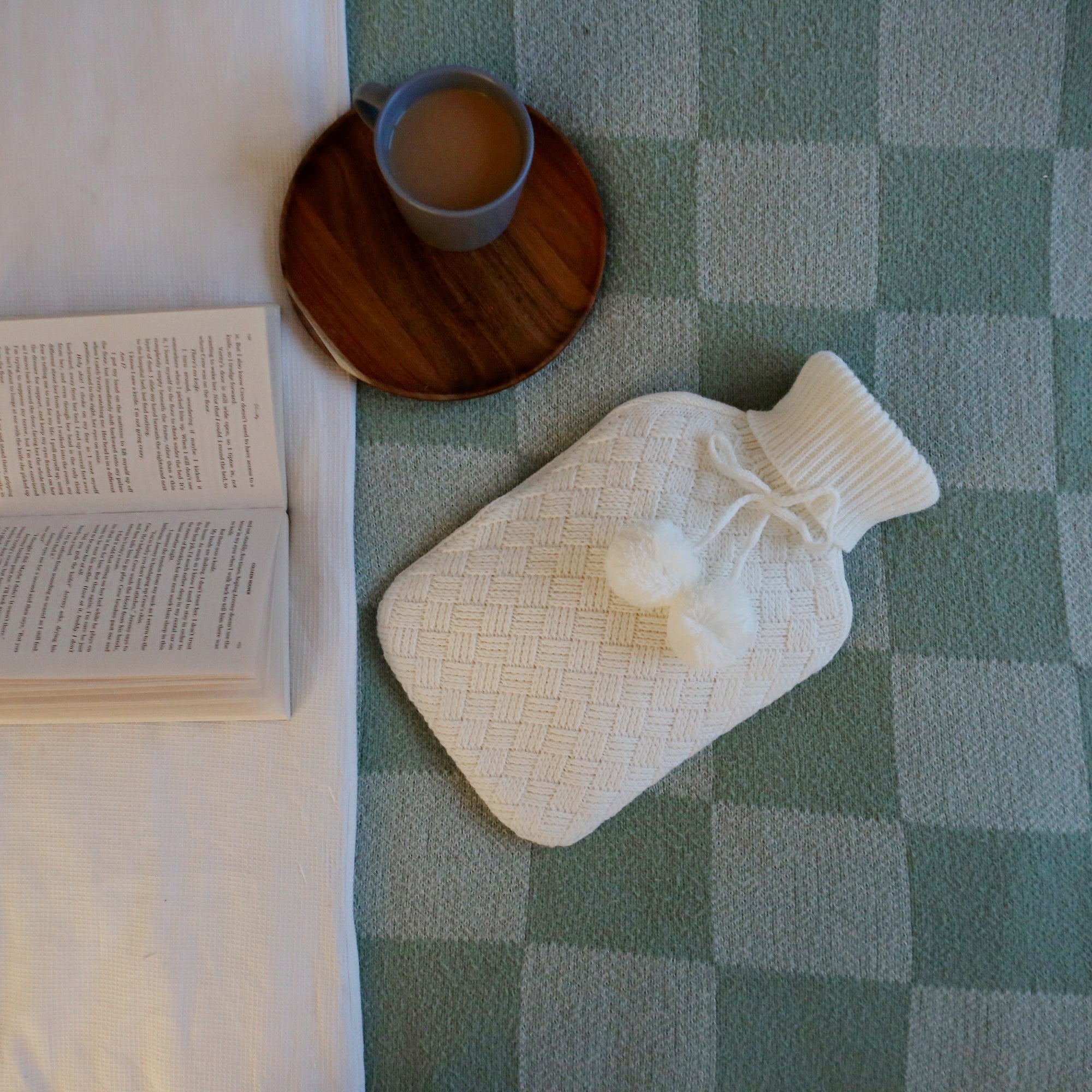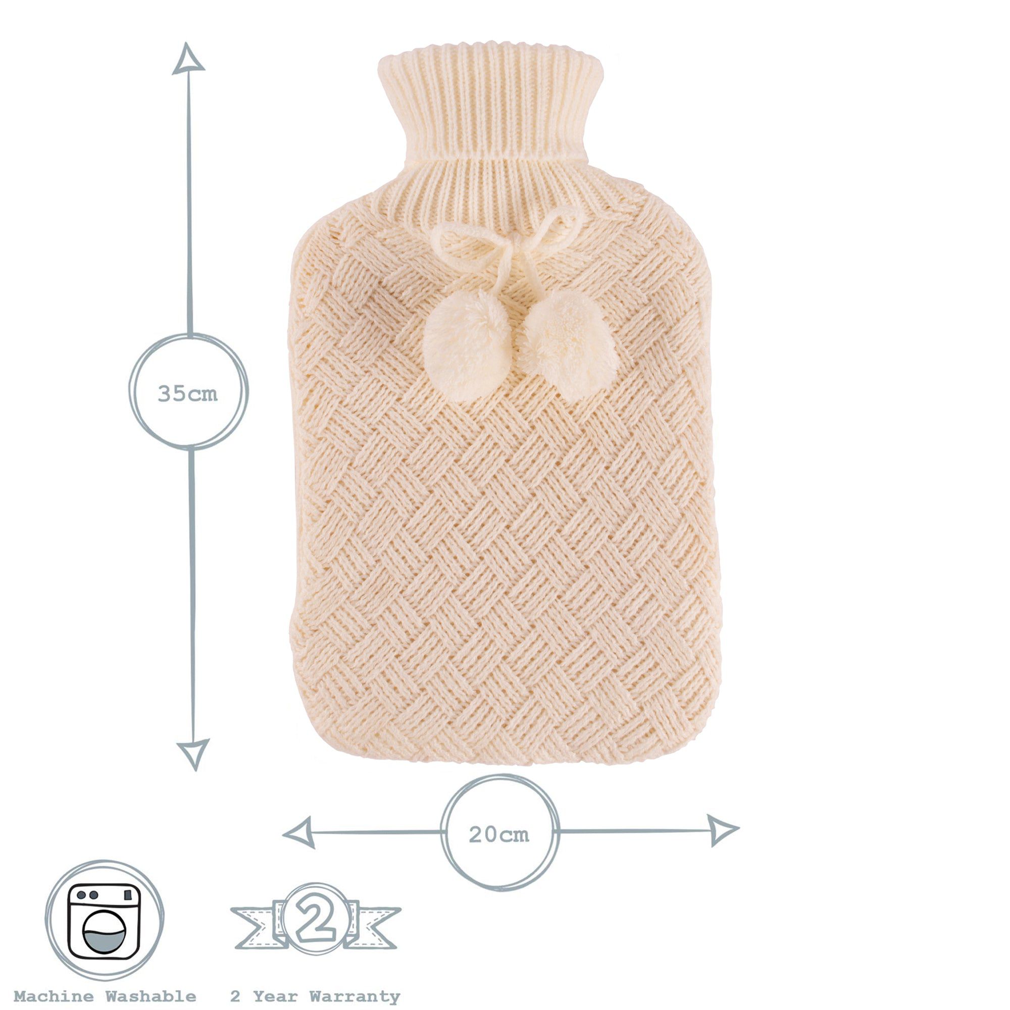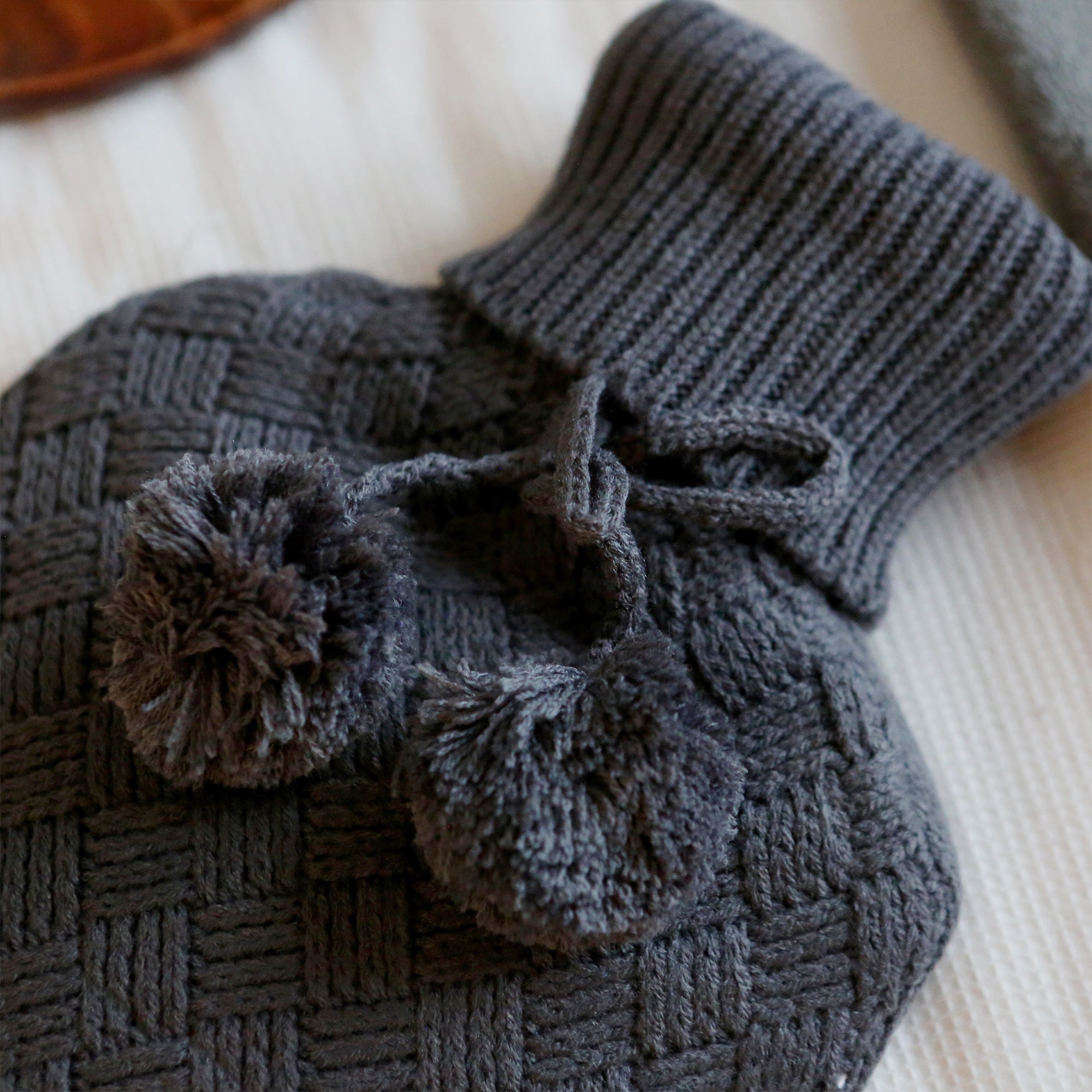 2L Pom Pom Knitted Hot Water Bottle & Cover Set