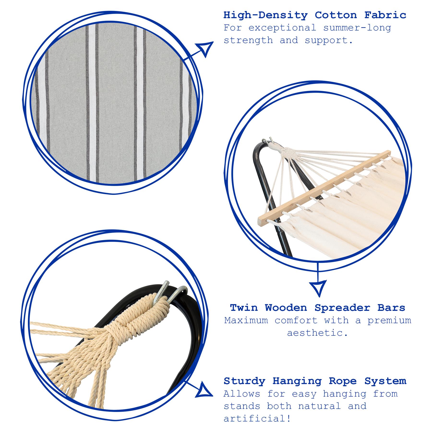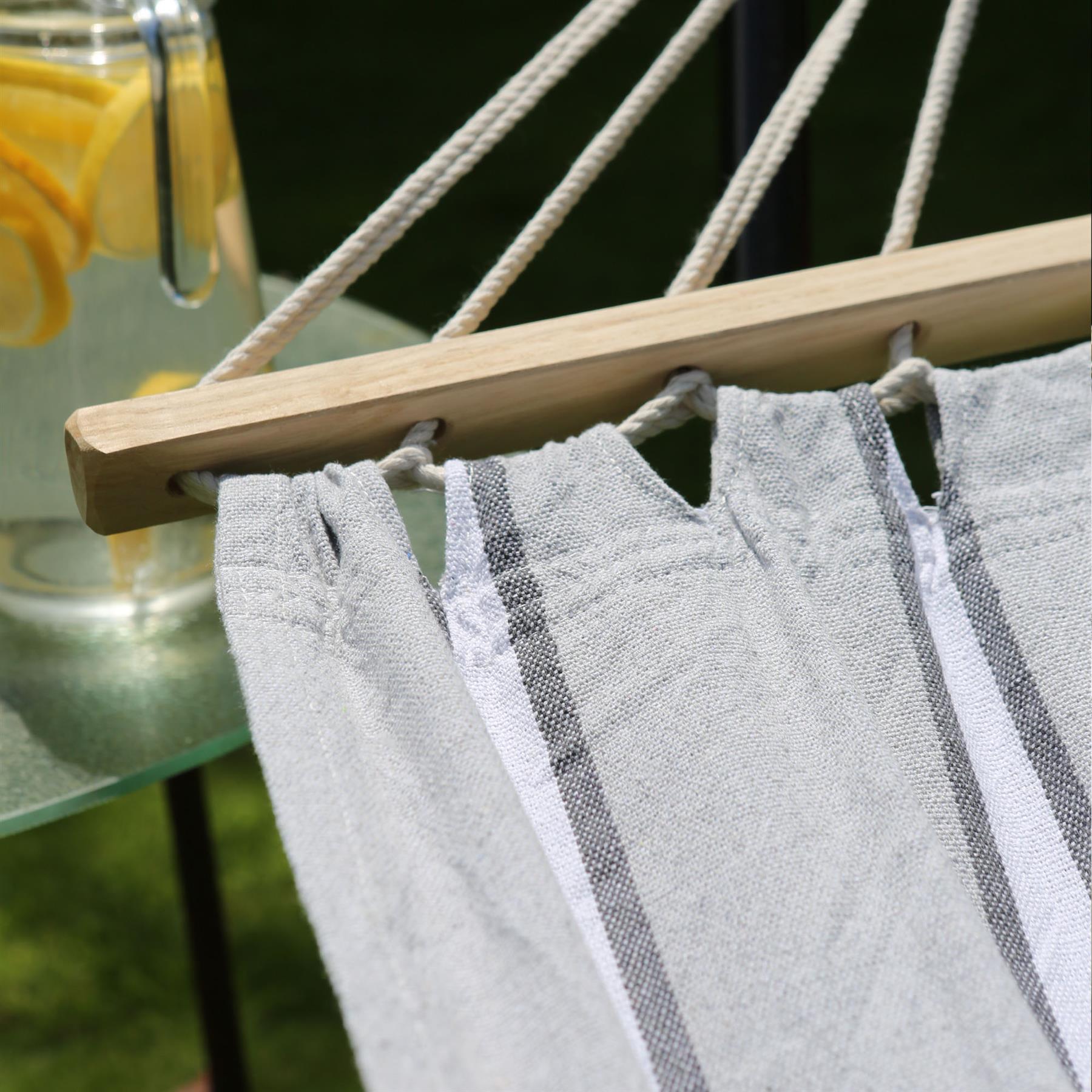 These hammocks have been crafted in the Brazilian style, using heavyweight cotton for the ultimate in softness and comfort. Each end has been finished with a wooden spreader bar that keeps the fabric taut and open - perfect for sun worshippers!