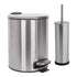 2pc 5L Round Brushed Stainless Steel Pedal Bin & Toilet Brush Set