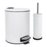 2pc 5L White Round Stainless Steel Pedal Bin & Toilet Brush Set