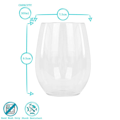 300ml Reusable Plastic Stemless Wine Glasses - Pack of Six
