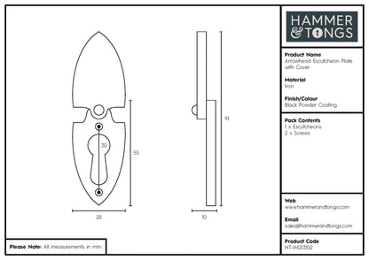 30mm x 55mm Black Arrowhead Escutcheon Plate with Cover
