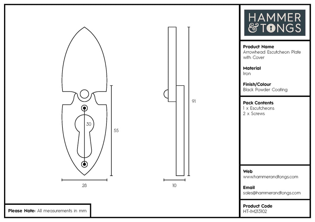 Give your doors an authentic antique finish with our Hammer & Tongs Arrowhead Escutcheon Plate with Cover.