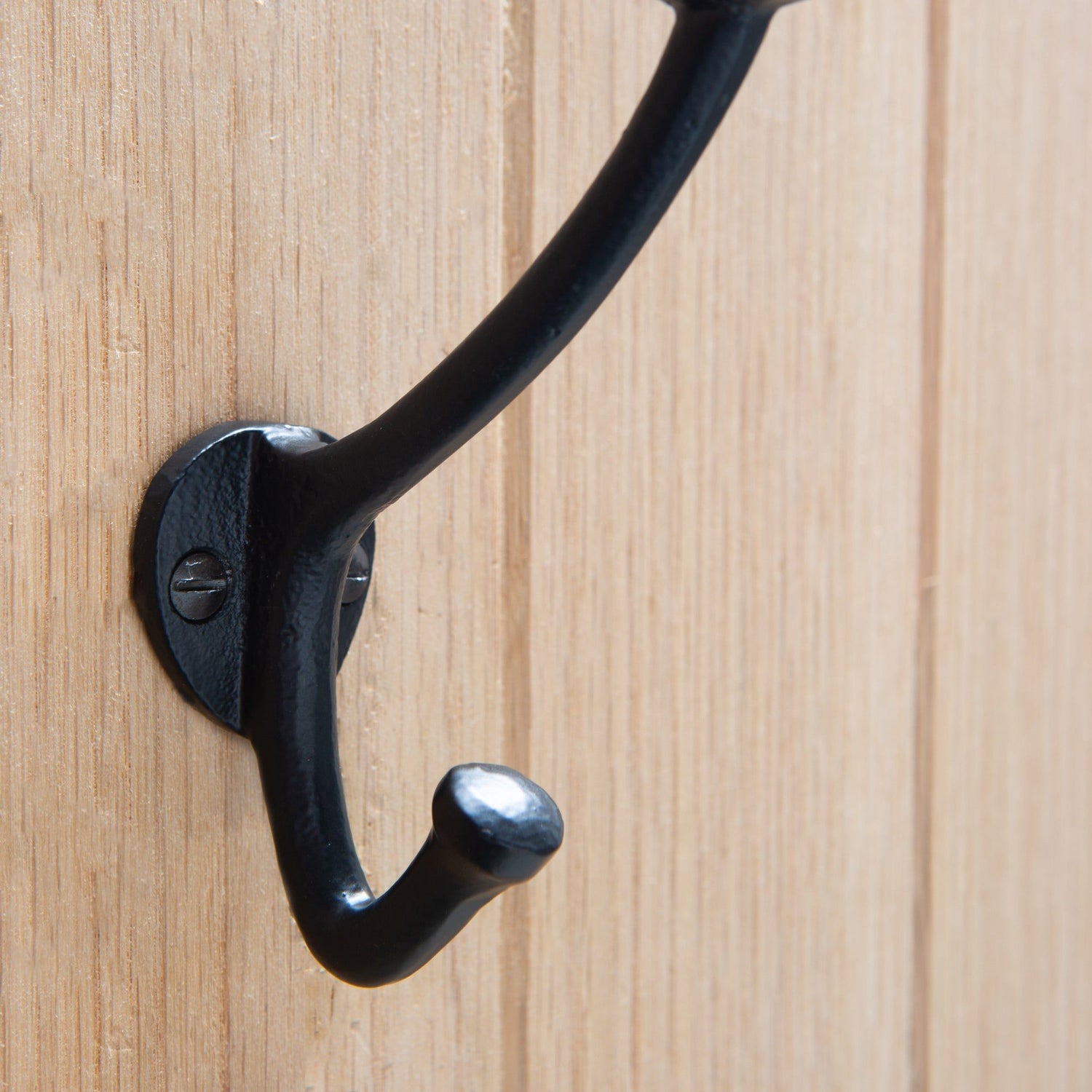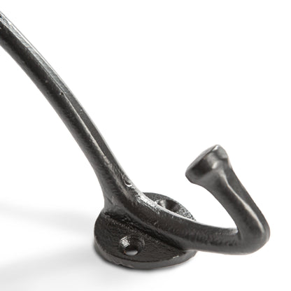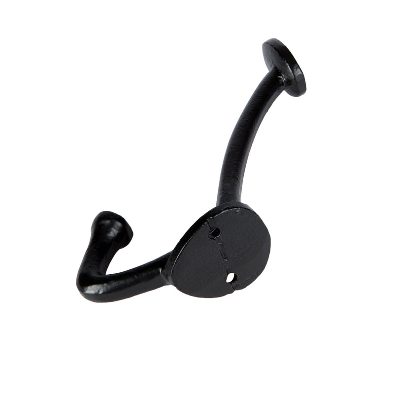 Forged from iron with a classic powder-coated finish, this durable dual-pronged hook provides an efficient space-saving storage solution for coats, cloaks, bathrobes, bags and more.