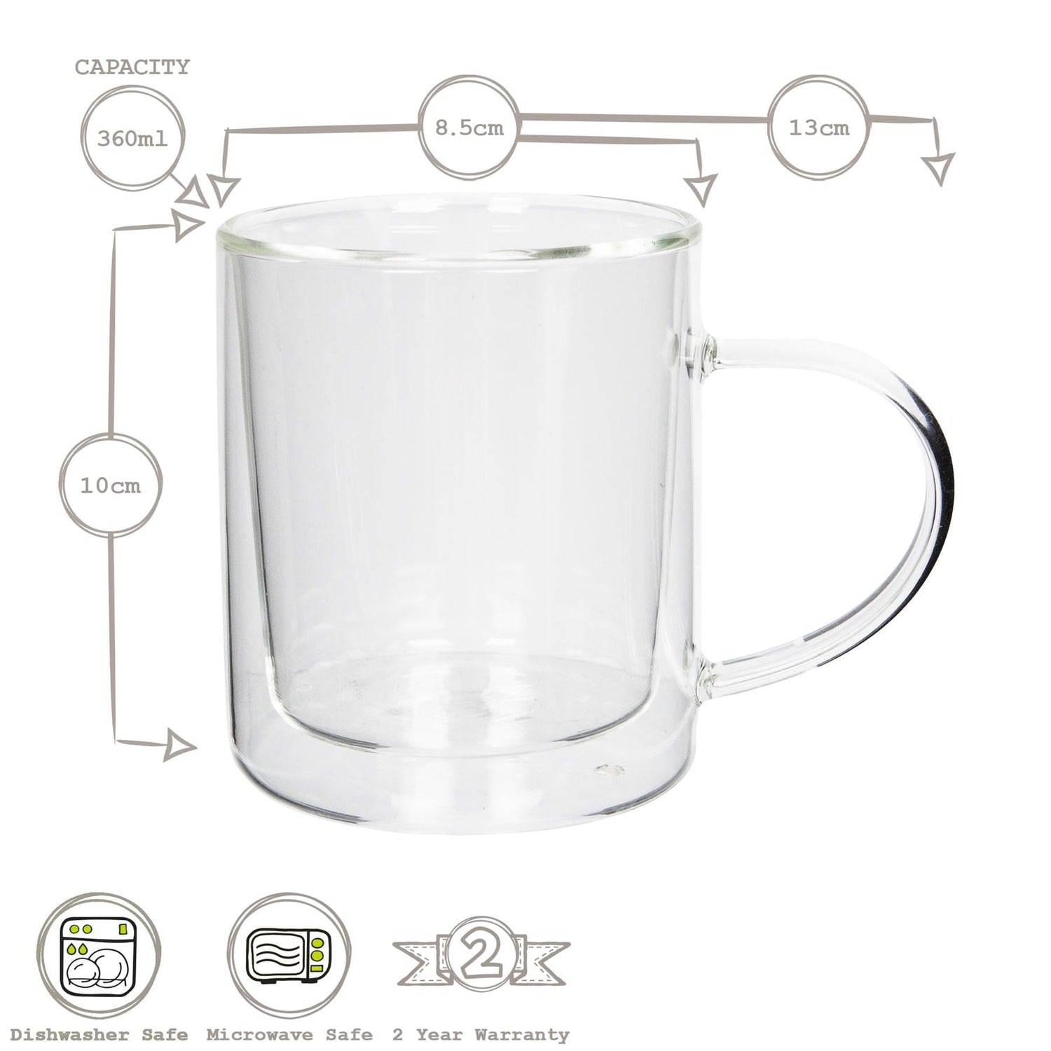 360ml Double-Walled Glass Mugs Set - Pack of 2