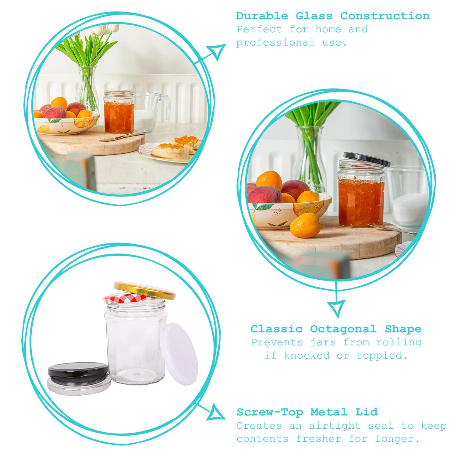 Classic Octagonal Shape - Prevents jars from rolling if knocked or toppled