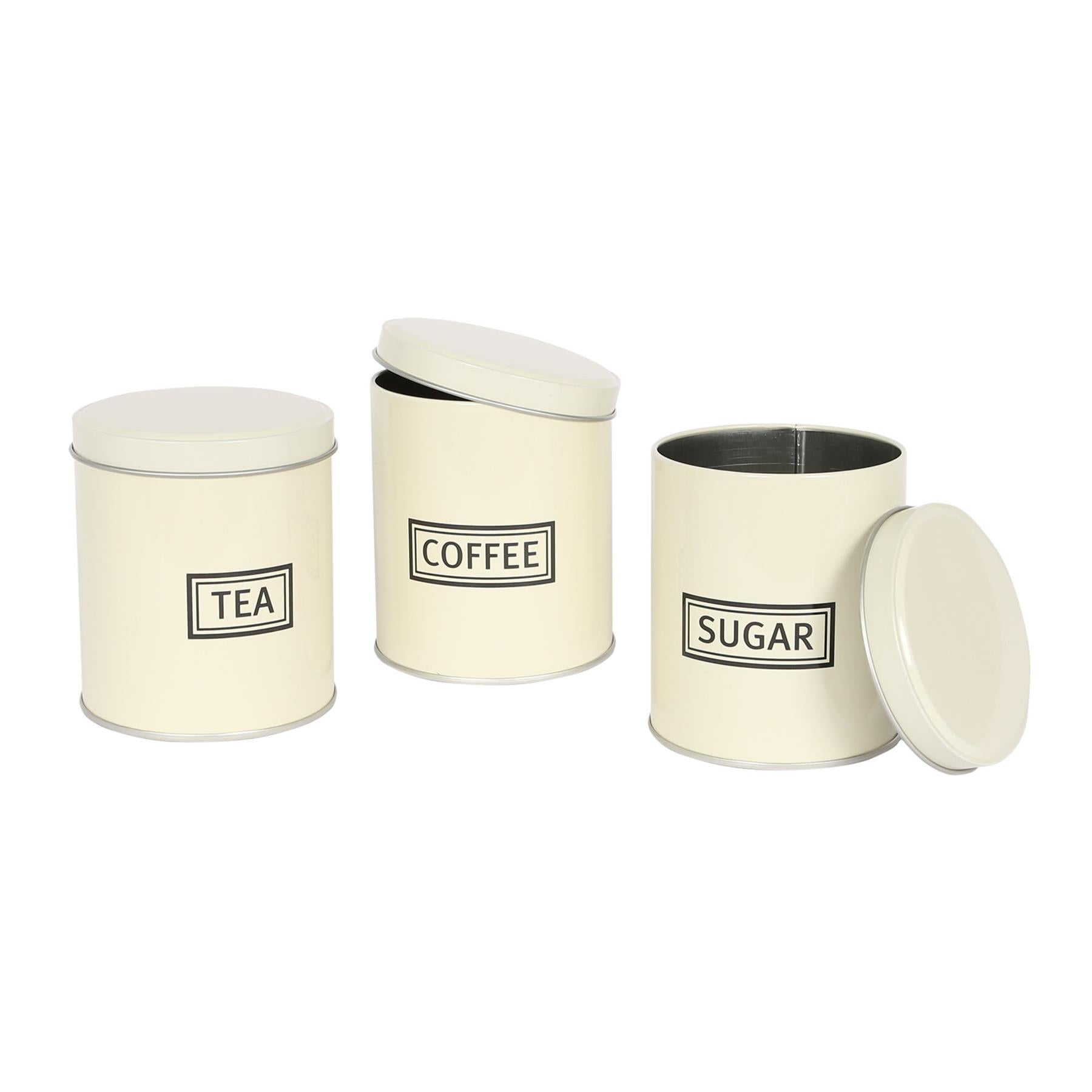 3pc Round Metal Tea Coffee Sugar Canister Set