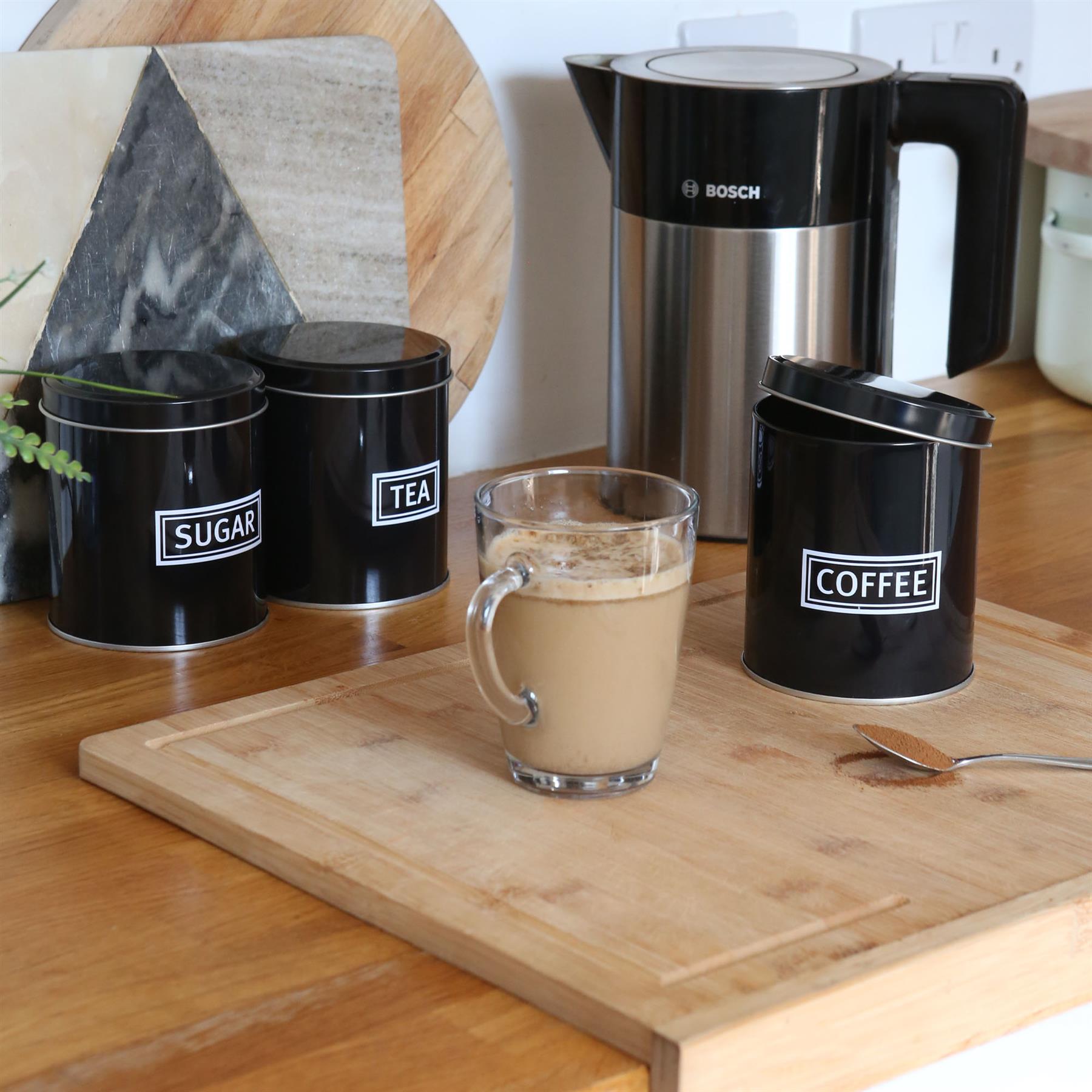 Lightweight yet sturdy thanks to their classic tin construction, these sleek containers offer an easy way of keeping kitchen countertops and cupboards organised, with a bold text print decoration allowing you to clearly determine the contains contained within.