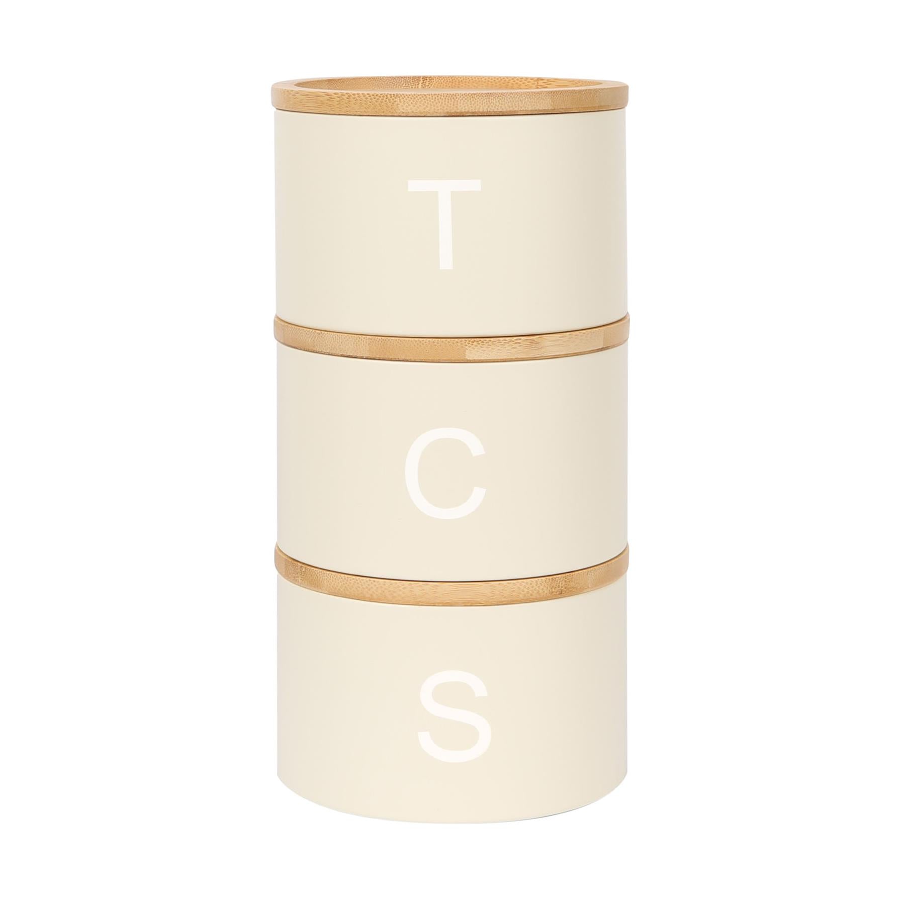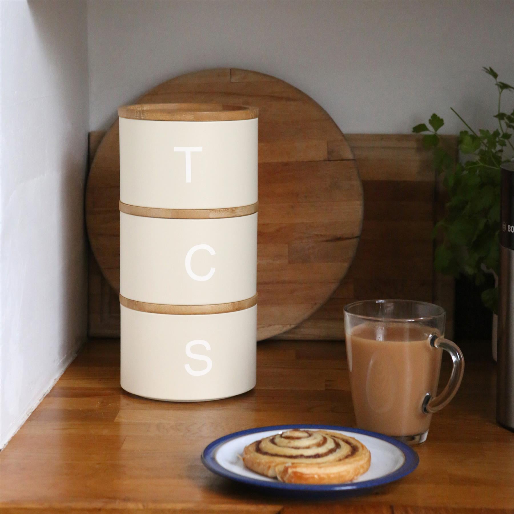 Set of Three Stackable Storage Canisters - Organise your favourite teabags, coffee beans and sweeteners without sacrificing valuable kitchen storage space