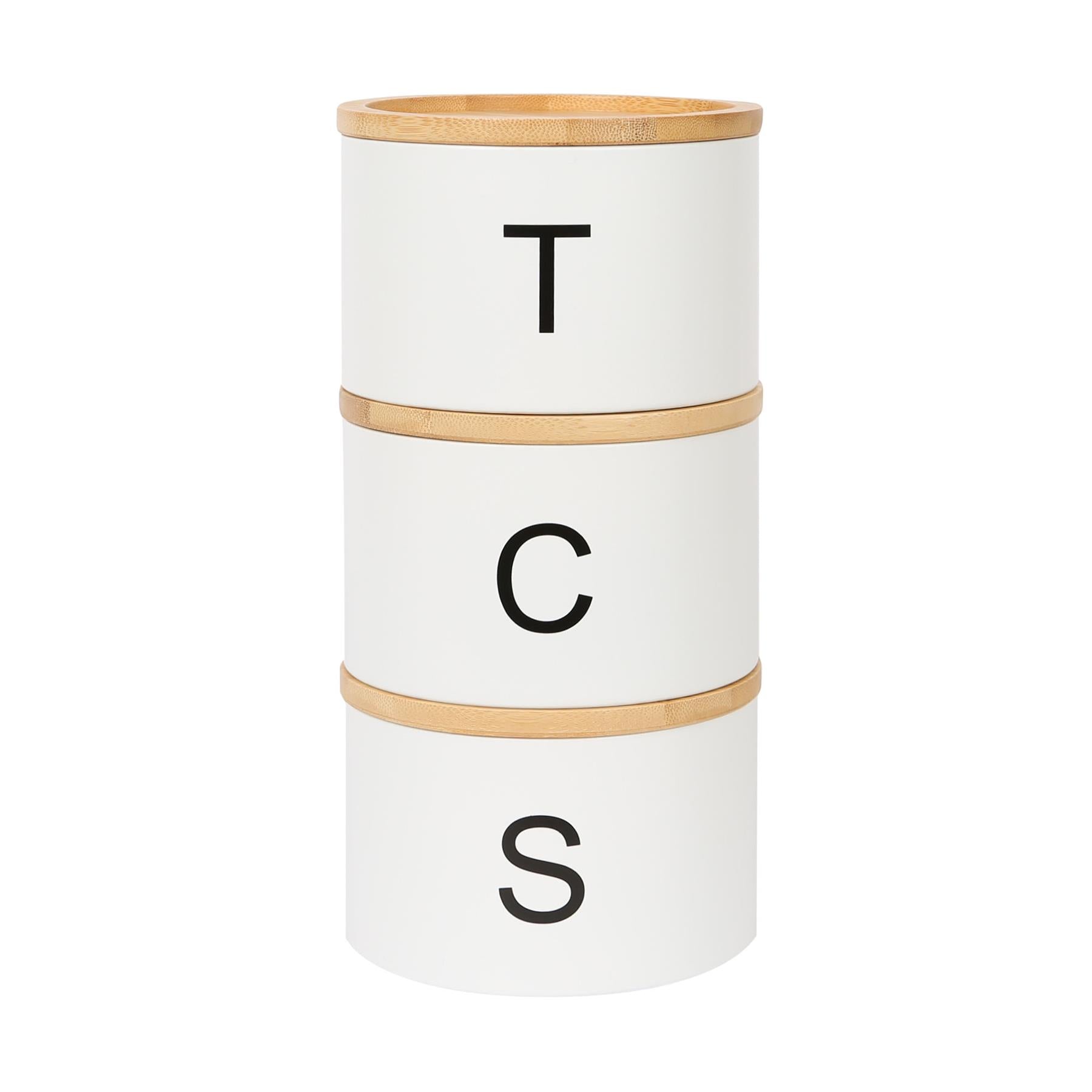 3pc Stacking Tea Coffee Sugar Canister Set with Bamboo Lids
