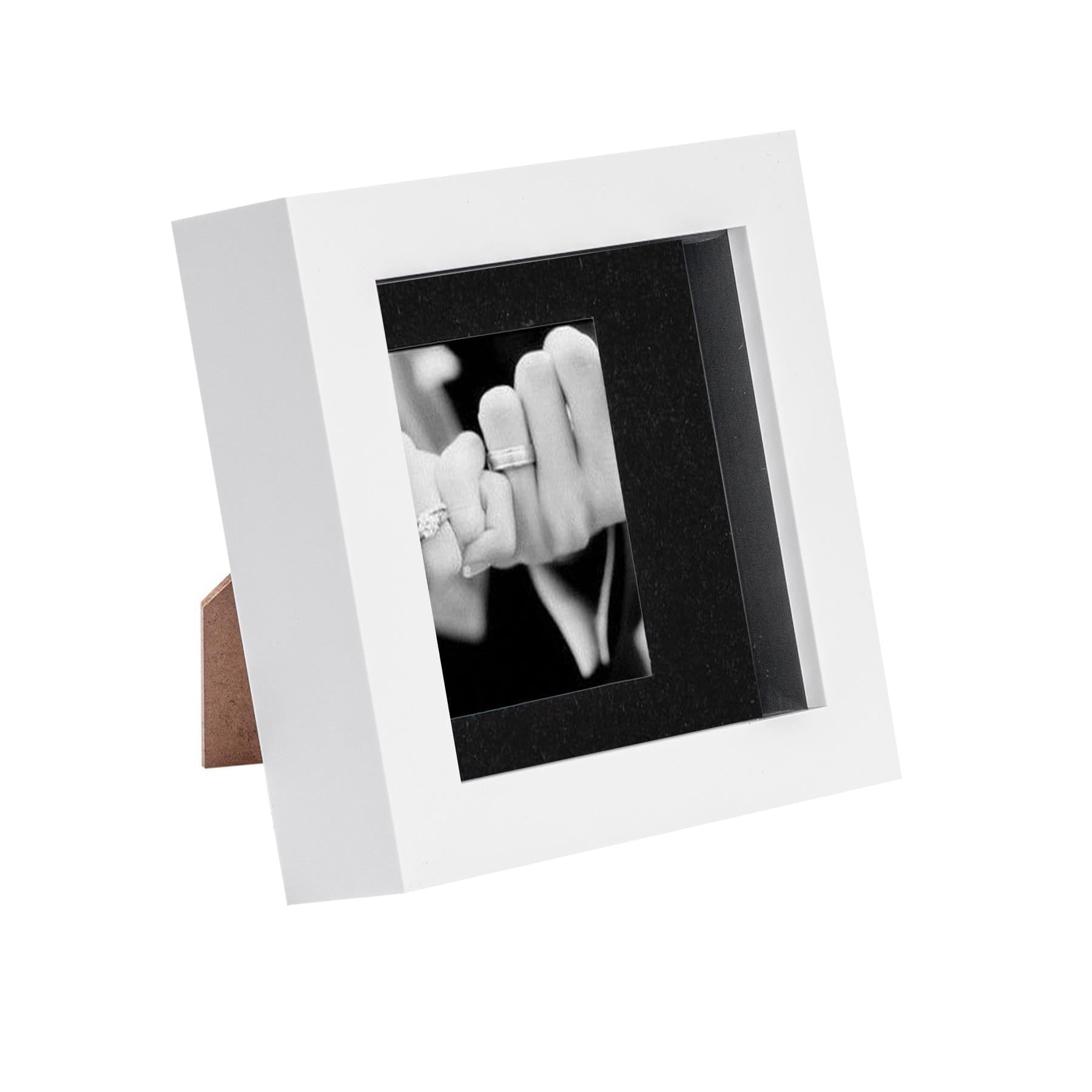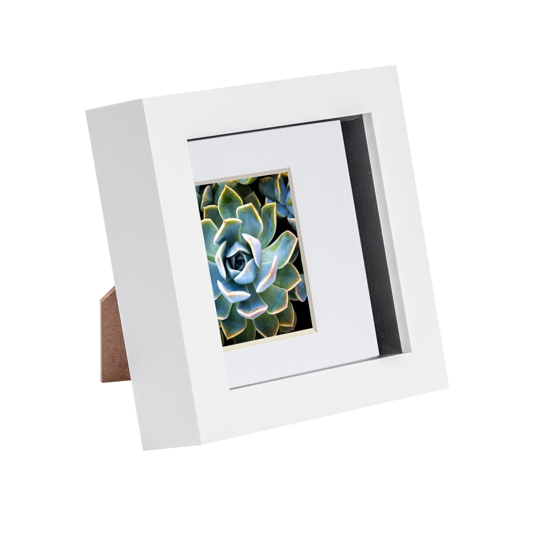 4" x 4" White 3D Box Photo Frame - with 2" x 2" Mount