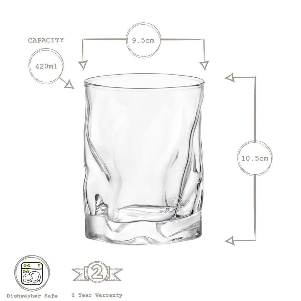 The 420ml capacity makes these glasses perfect for serving your favourite scotch or bourbon, though they would be equally as suited to serving juices, soft drinks or even water.