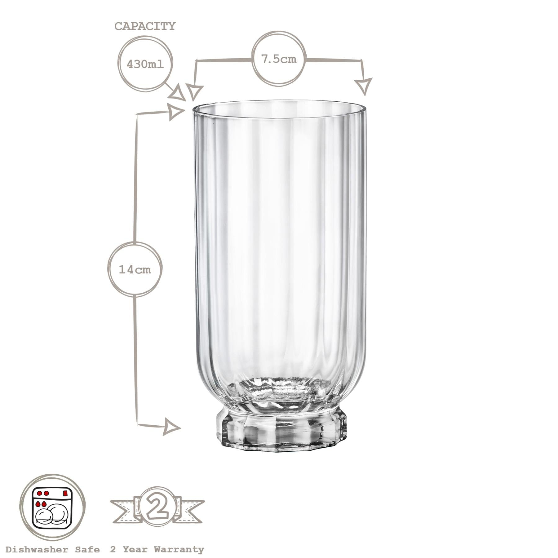 The tall, straight sides and 430ml capacity provide the perfect serving vessel for everything from bottled beers and cocktails to soft drinks, fruit juice and water, while the reinforced base offers maximum strength and durability.