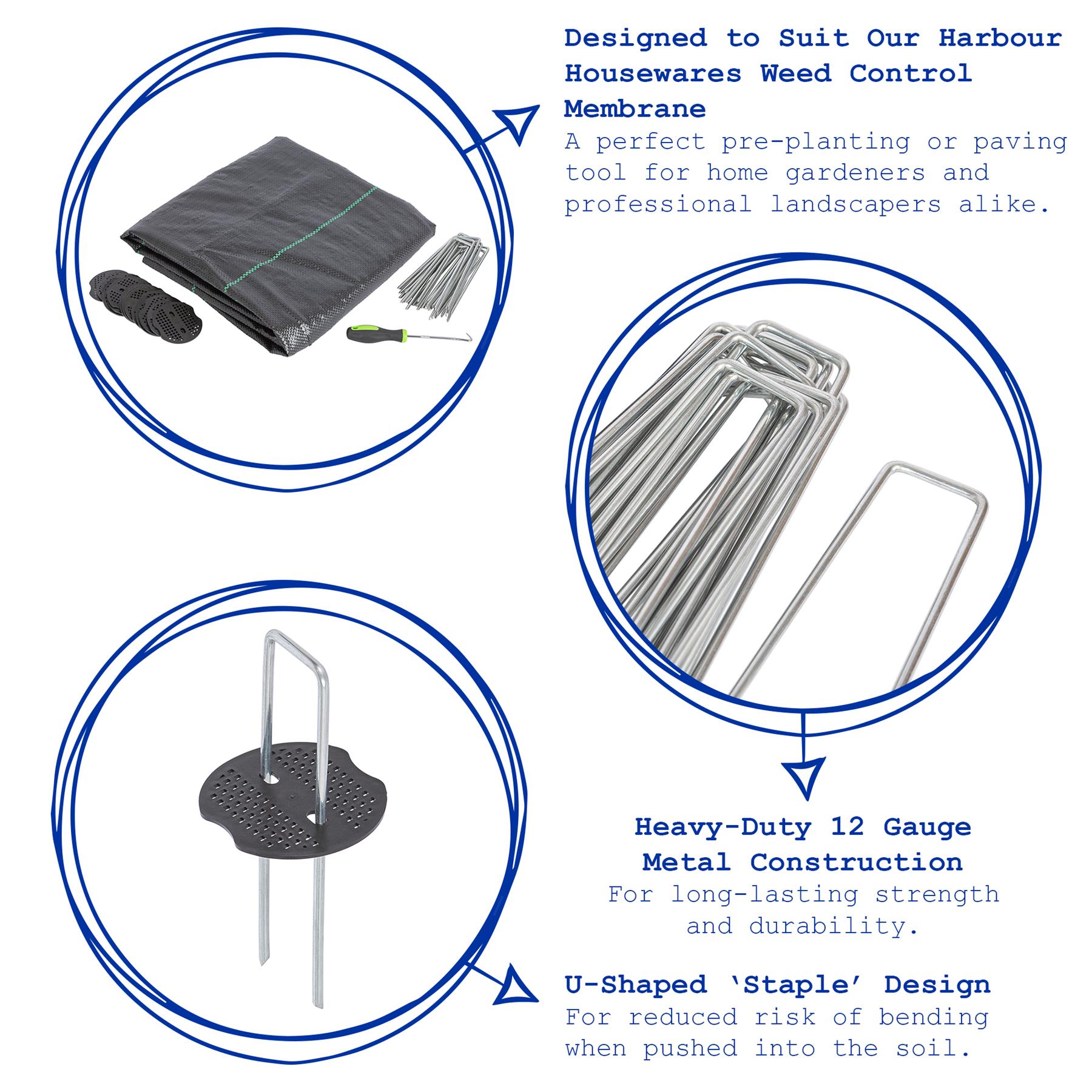 The U-shaped 'staple' design offers maximum strength and performance by making each peg easier to push into the ground without bending. Pair with our Weed Membrane Fixing Plates for even greater security (sold separately).