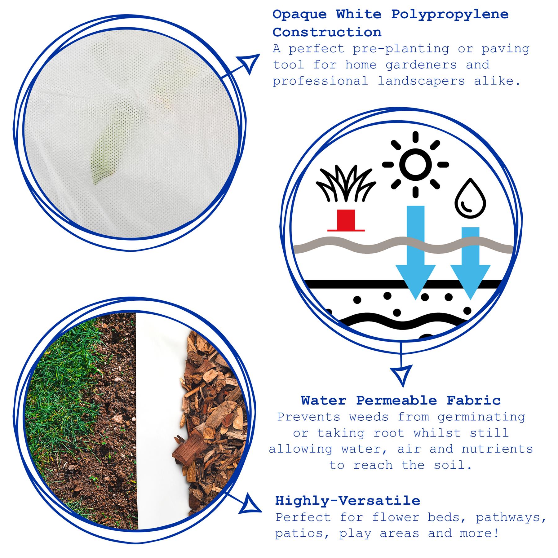 Water-Permeable Fabric - Prevents weeds from germinating or taking root whilst still allowing water, air and nutrients to reach the soil