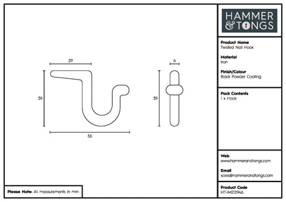 Add an authentic antique finish to any cloakroom, hallway or bedroom door with our Hammer & Tongs Twisted Nail Hook.