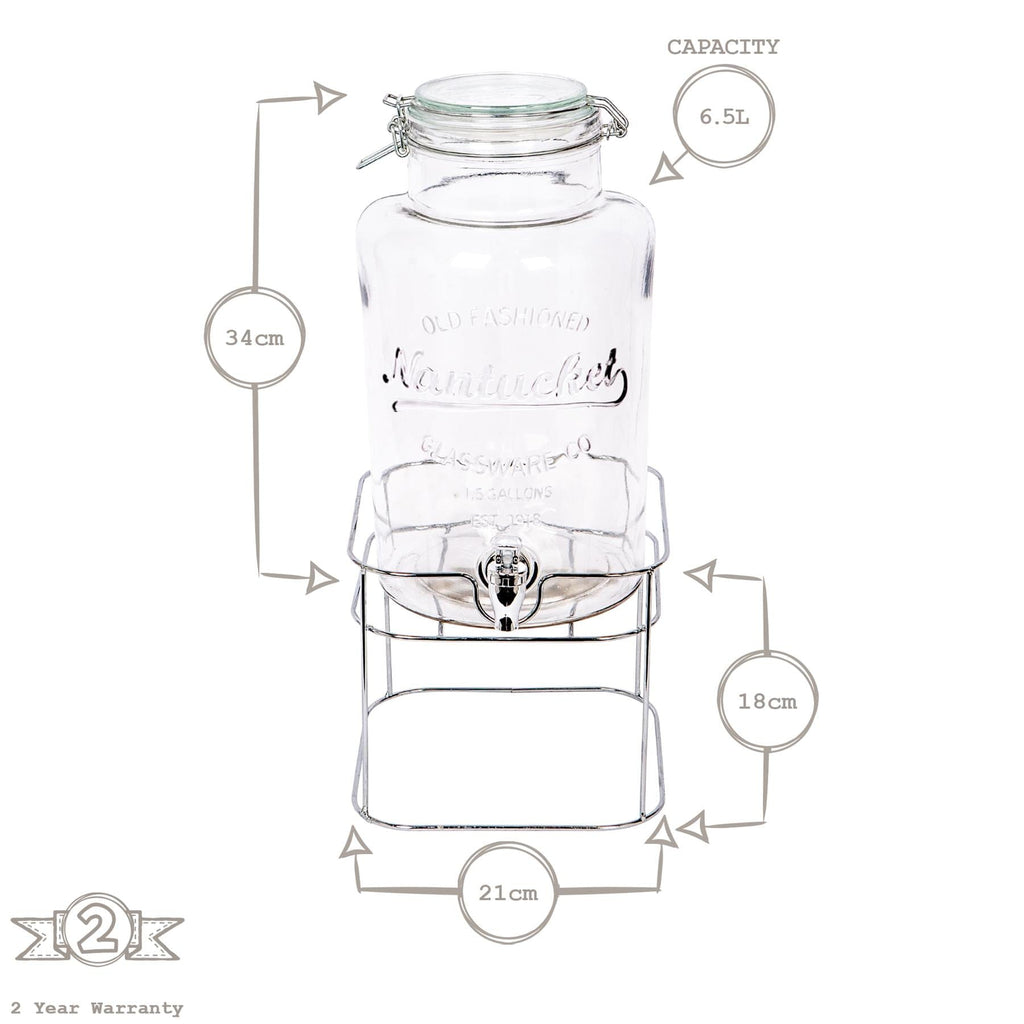 6.5L Glass Drinks Dispenser with Tap & Chrome Stand