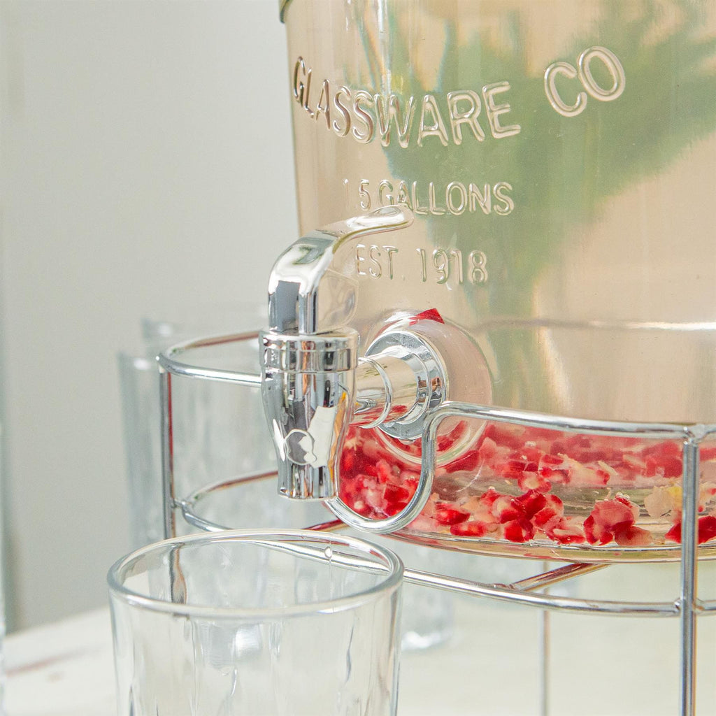 6.5L Glass Drinks Dispenser with Tap & Chrome Stand - By Rink Drink