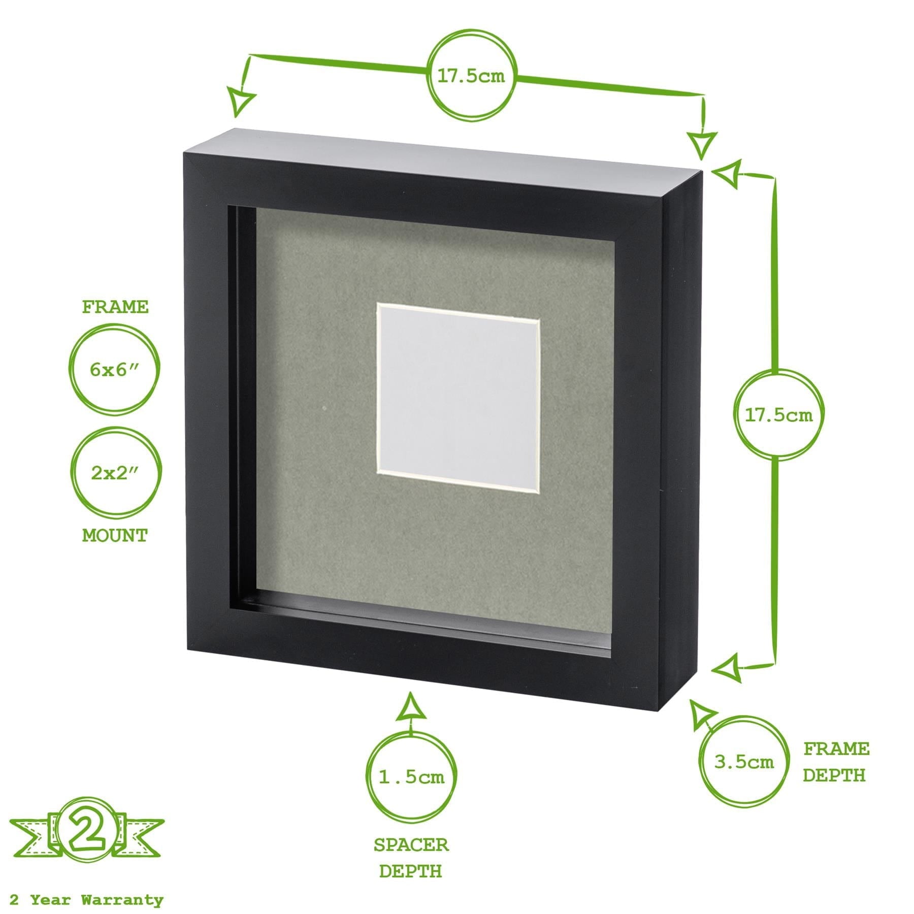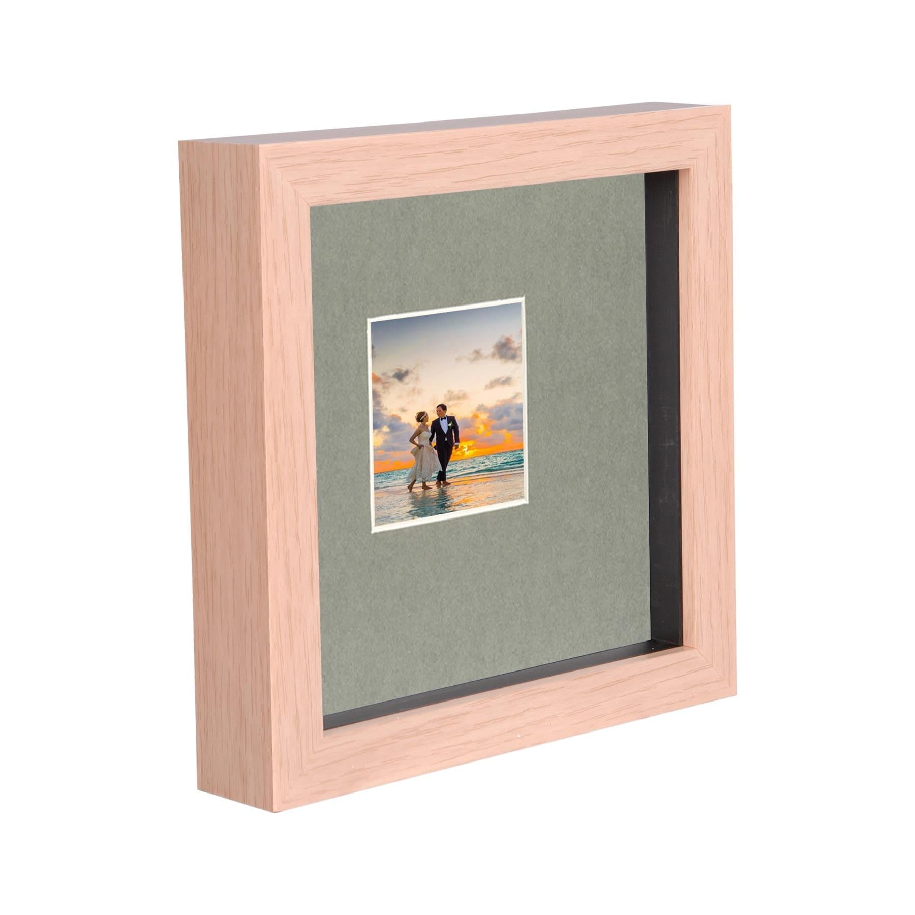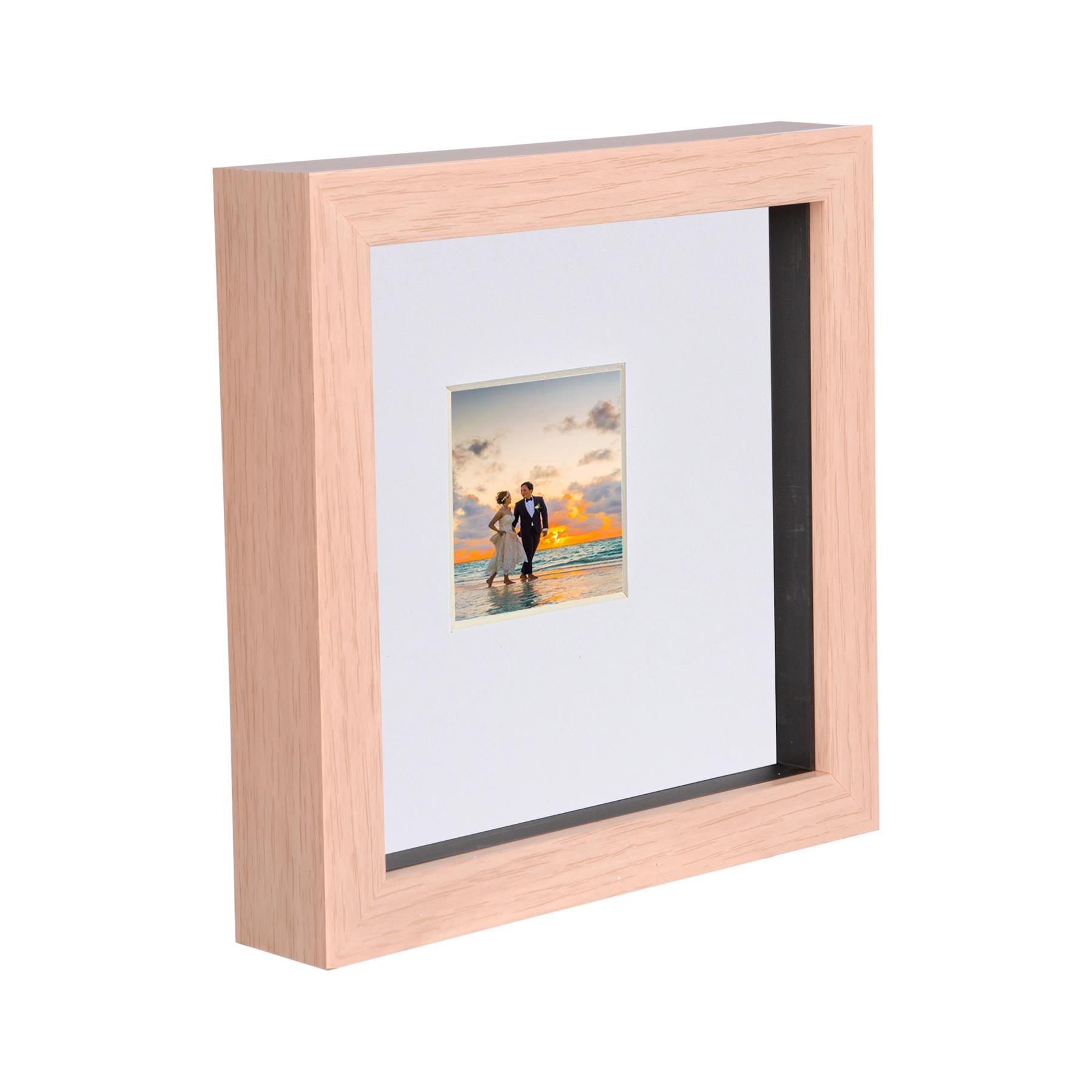 6" x 6" Light Wood 3D Deep Box Photo Frame - with 2" x 2" Mount