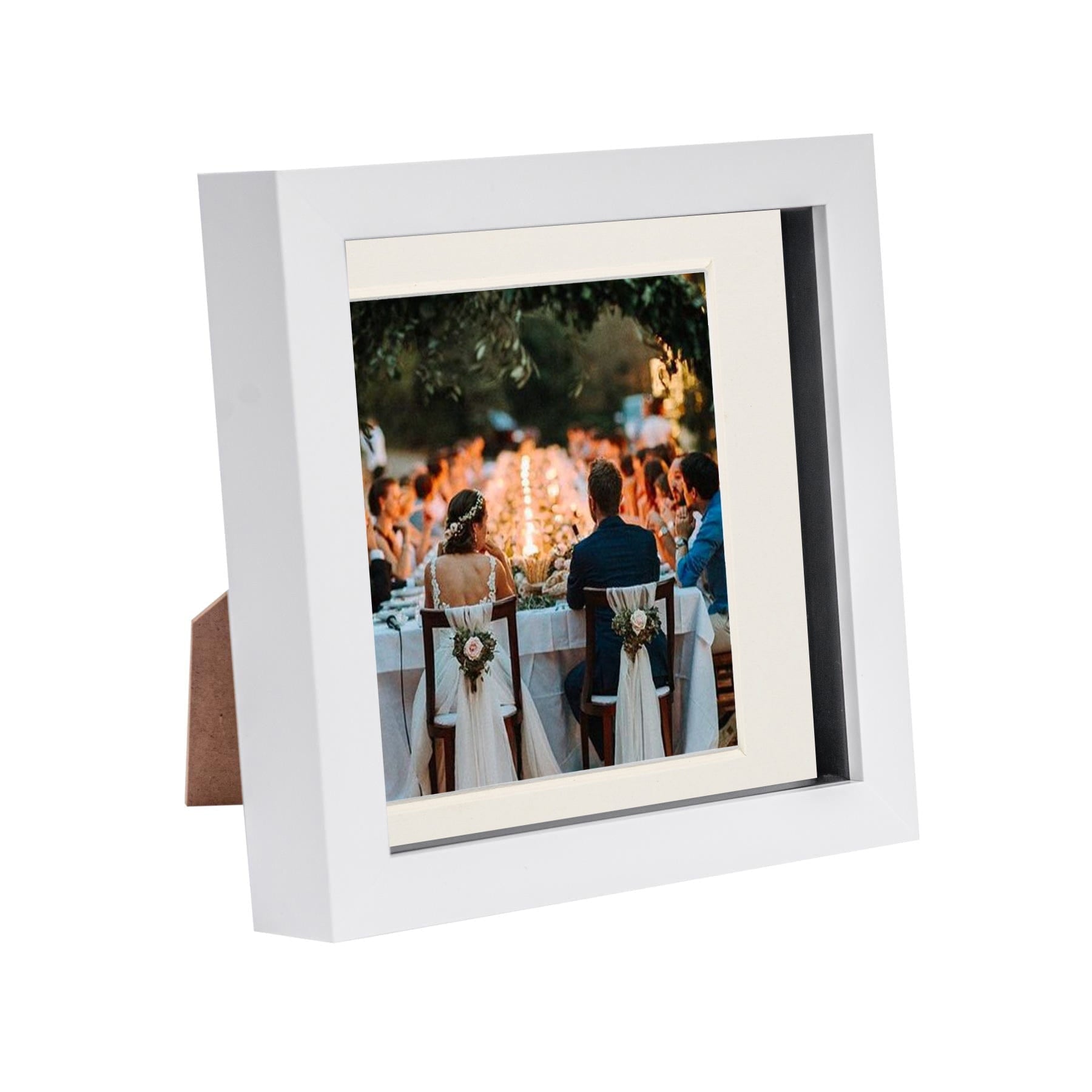 For a final pièce de résistance, this box photo frame comes with a removable 'spacer frame' that gives you the choice of three display positions. Combine all three across multiple frames for a striking multi-dimensional effect!
