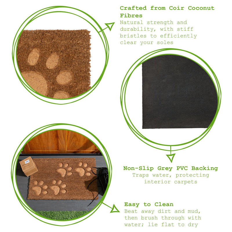 60cm x 40cm Brown Paw Embossed Coir Door Mat