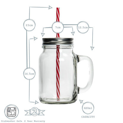 620ml Mason Drinking Jar Glasses with Straws - Pack of Four