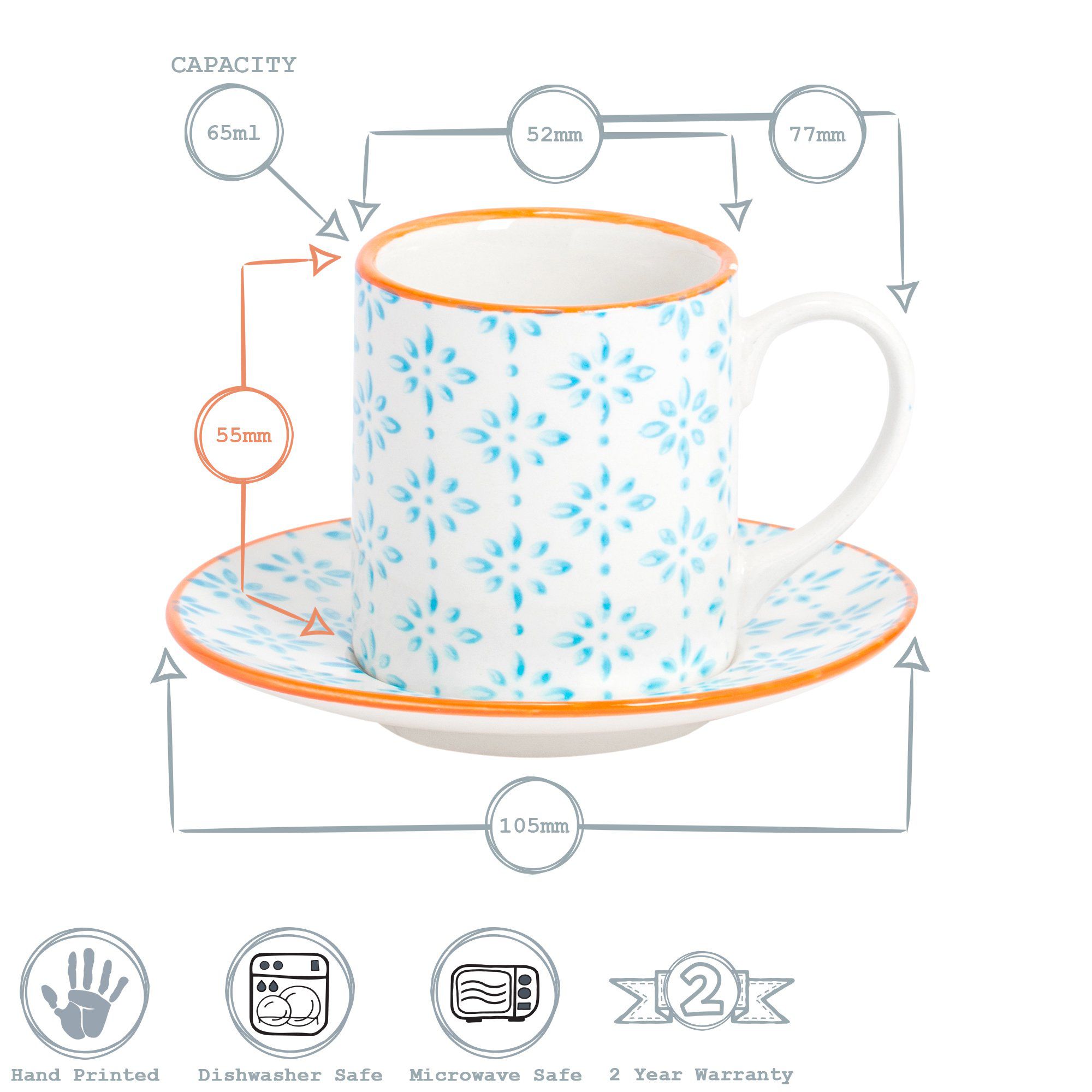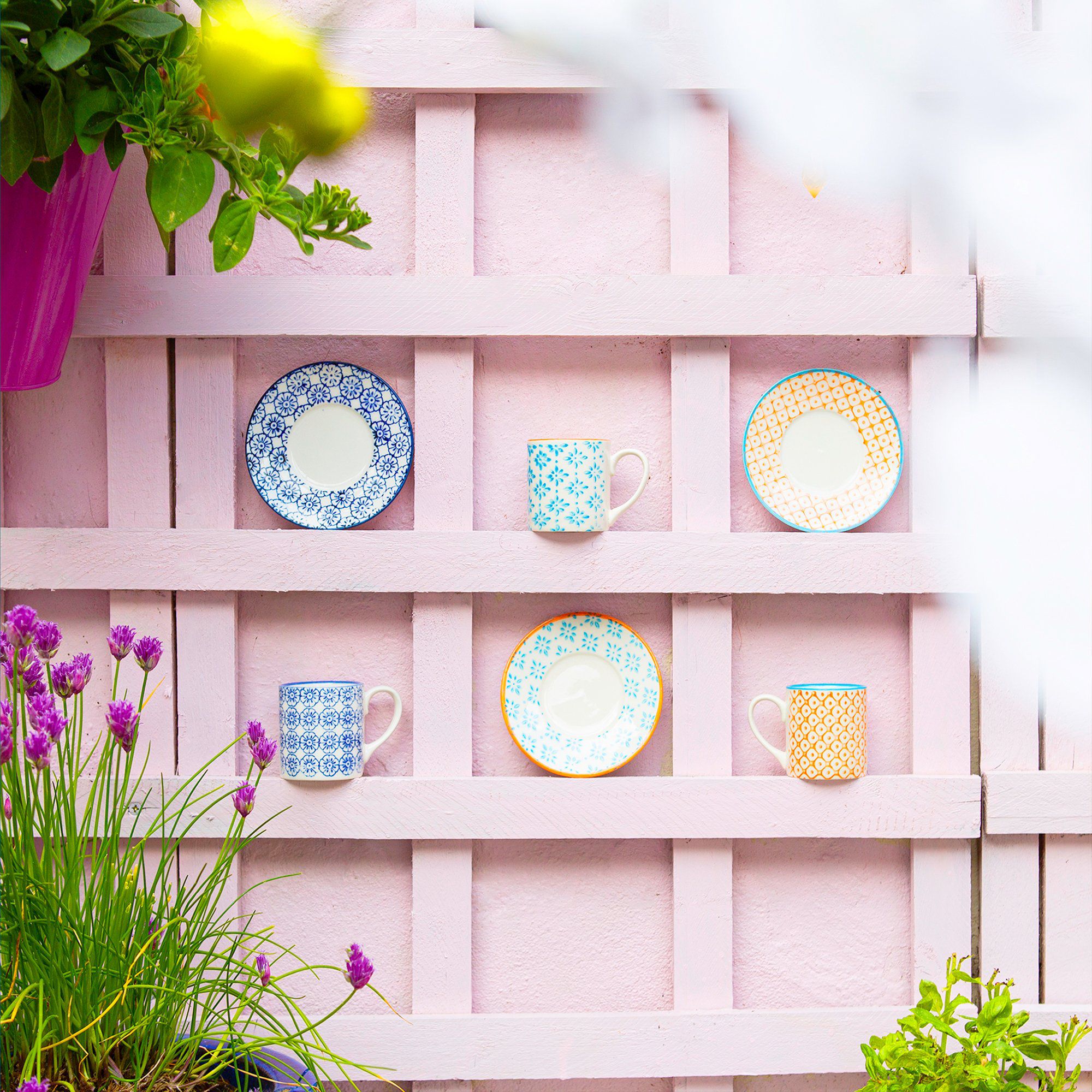 Give yourself that crucial caffeine kick with charming vintage style and add vibrant colour to your dining table crockery with this Hand Printed Espresso Cup and Saucer Set from Nicola Spring.