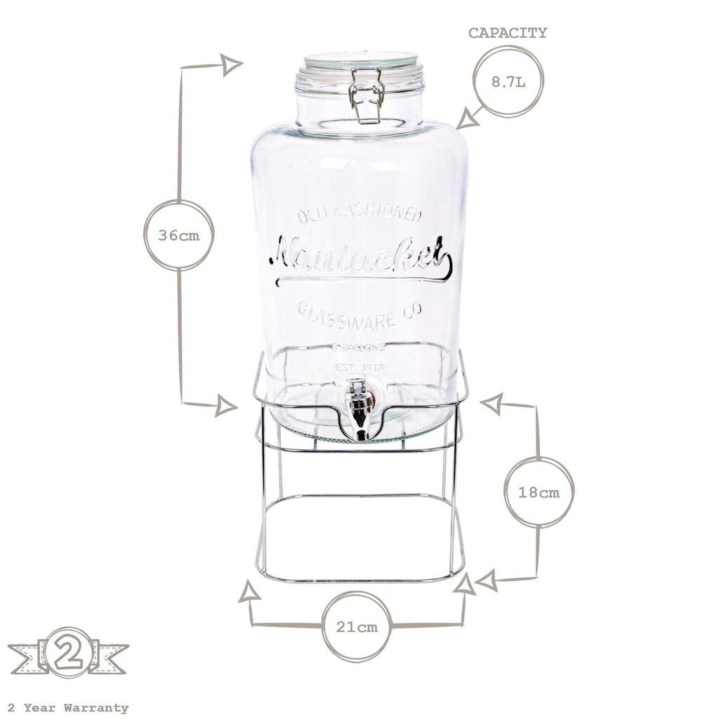 8.7L Glass Drinks Dispenser with Tap & Chrome Stand