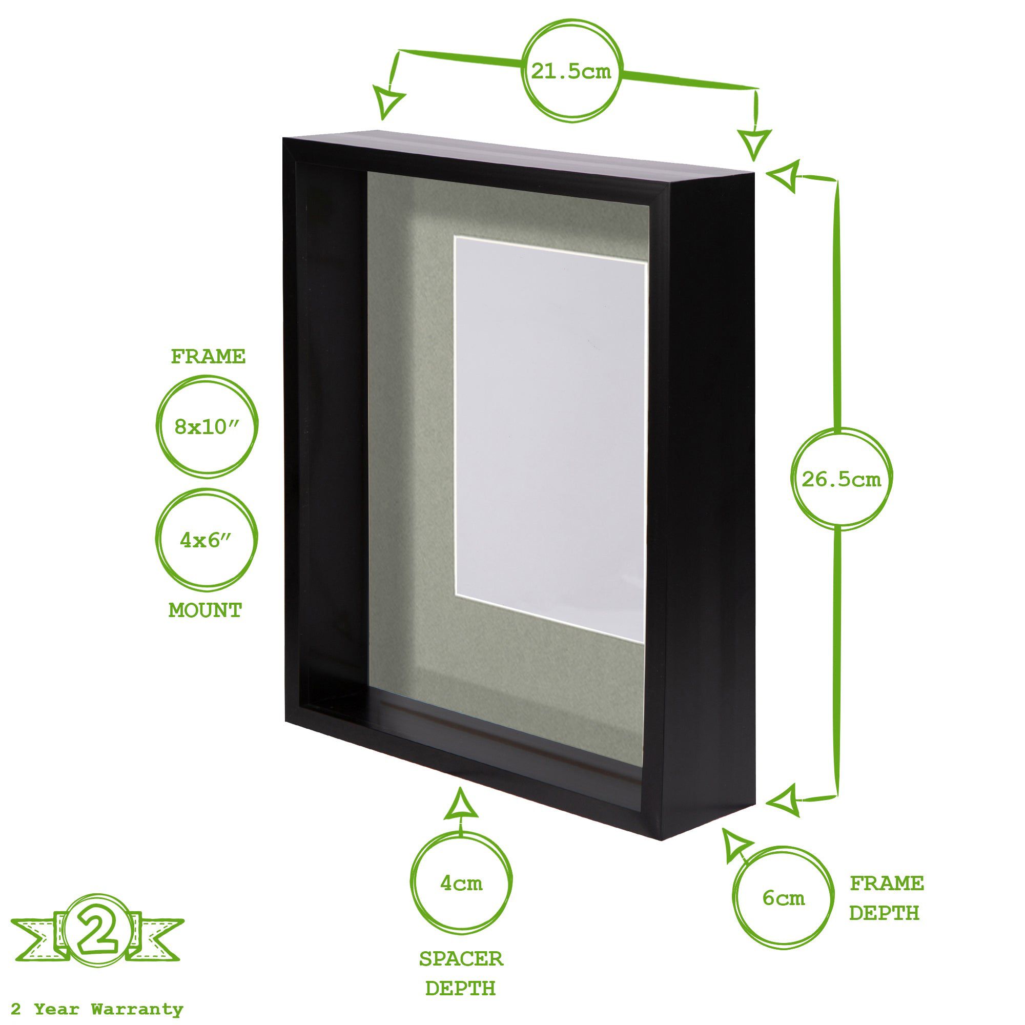 8" x 10" White 3D Deep Box Photo Frame - with 4" x 6" Mount