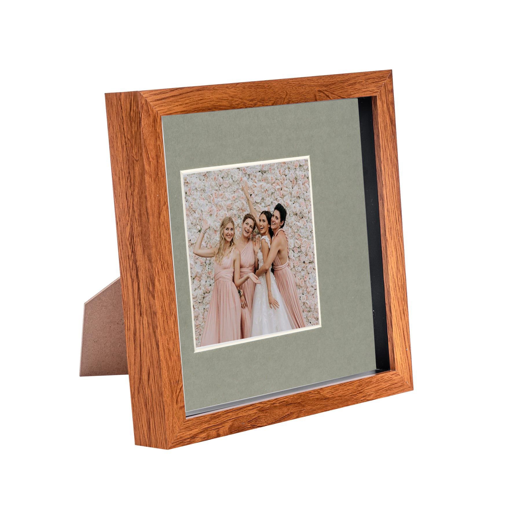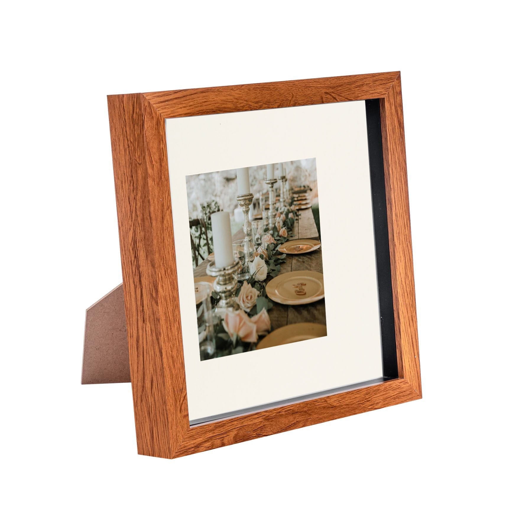 8" x 8" Dark Wood 3D Box Photo Frame - with 4" x 4" Mount