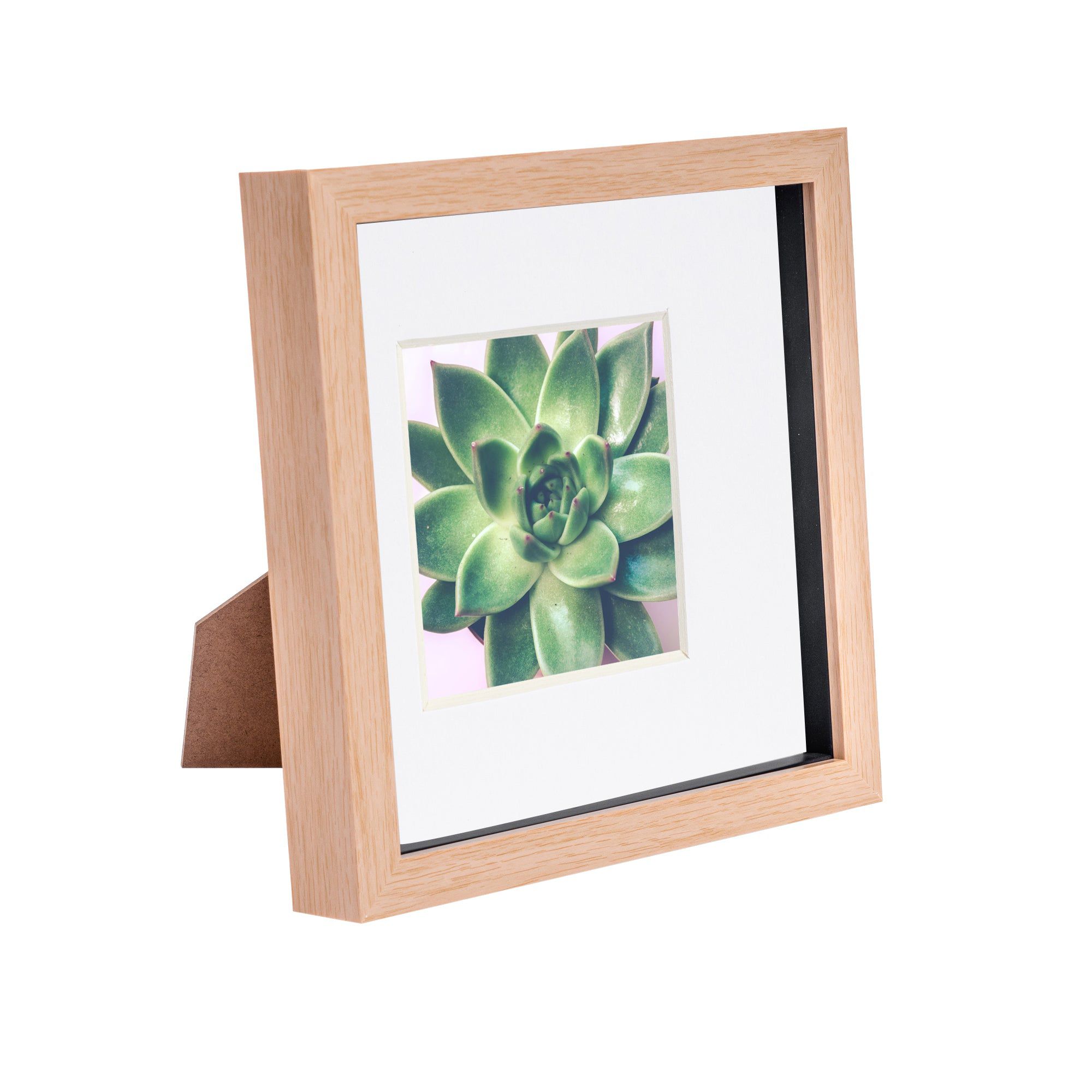 8" x 8" Light Wood 3D Box Photo Frame - with 4" x 4" Mount