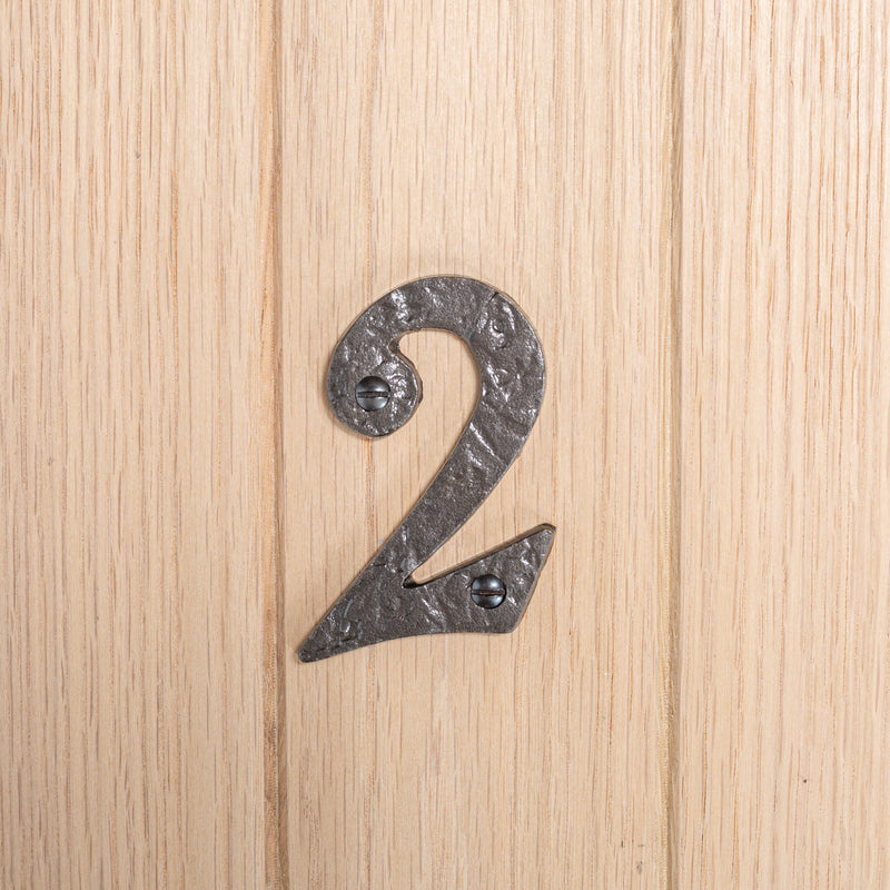 80mm Black Rustic Iron House Number 2 - By Hammer & Tongs