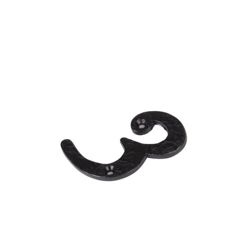 80mm Black Rustic Iron House Number 3 - By Hammer & Tongs
