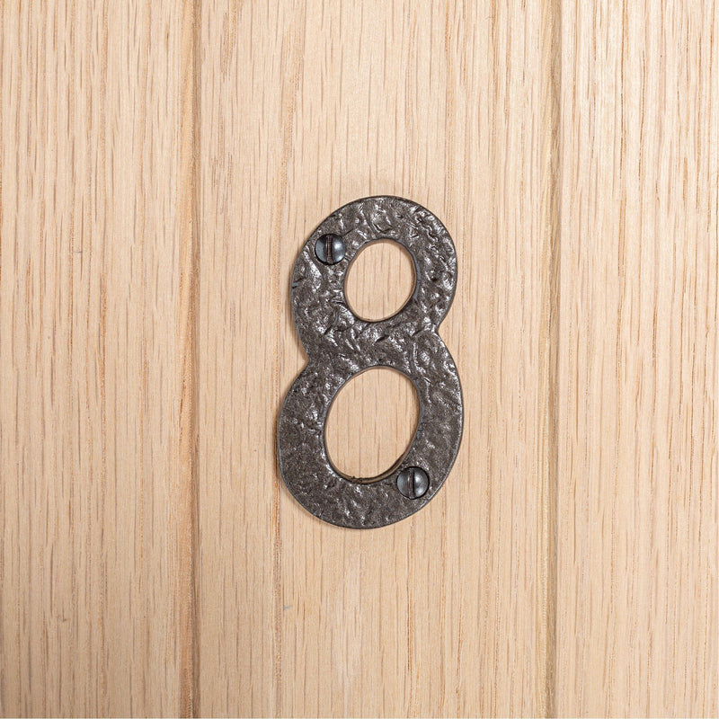 80mm Black Rustic Iron House Number 8 - By Hammer & Tongs