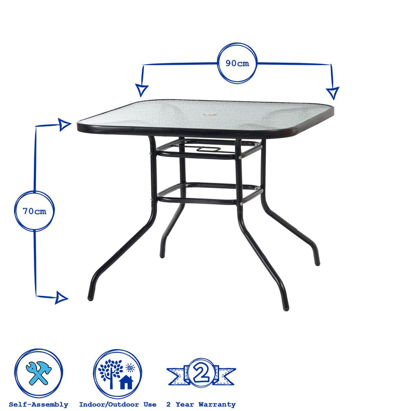 Sussex Black Metal Glass Top Garden Table - 90cm x 90cm