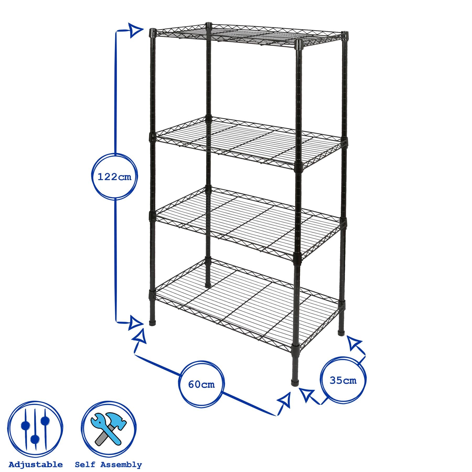 Adjustable Wire Shelving Unit - Black