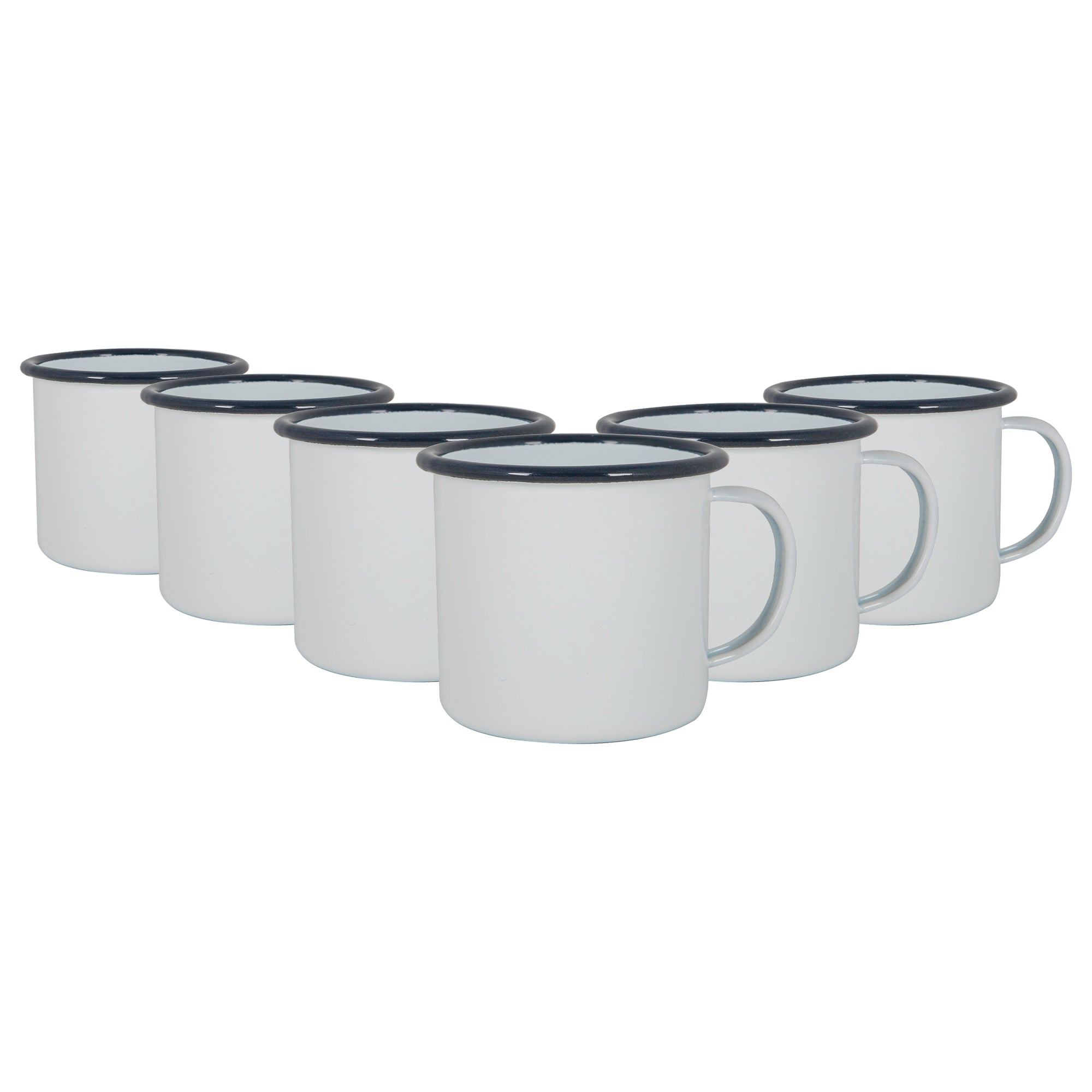 In this enamel collection, you’ll find the White 375ml mugs as part of the six‑piece set. Other color variants are available in six‑packs: Yellow (ST-AT-EN202330 x 6), Black (ST-AT-EN202333 x 6), Blue (ST-AT-EN202334 x 6), and Green (ST-AT-EN202335 x 6).