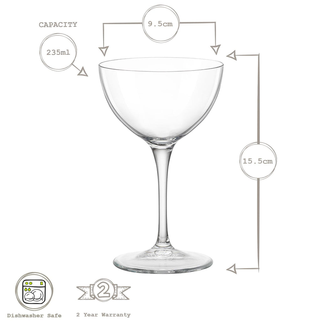 Bormioli Rocco 6 Piece Bartender Novecento Martini Glasses Set - 235ml