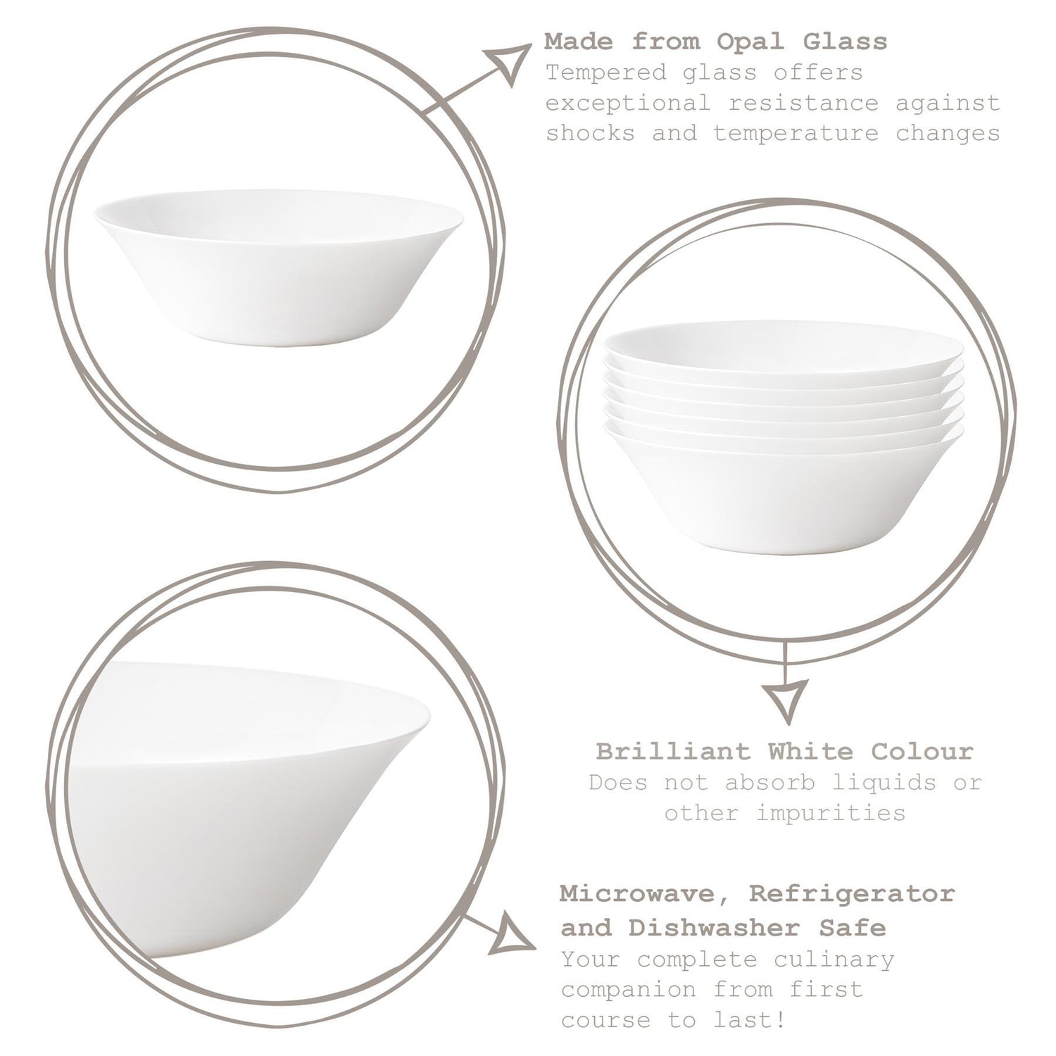 27cm White Moon Glass Salad Bowls - Pack of Six