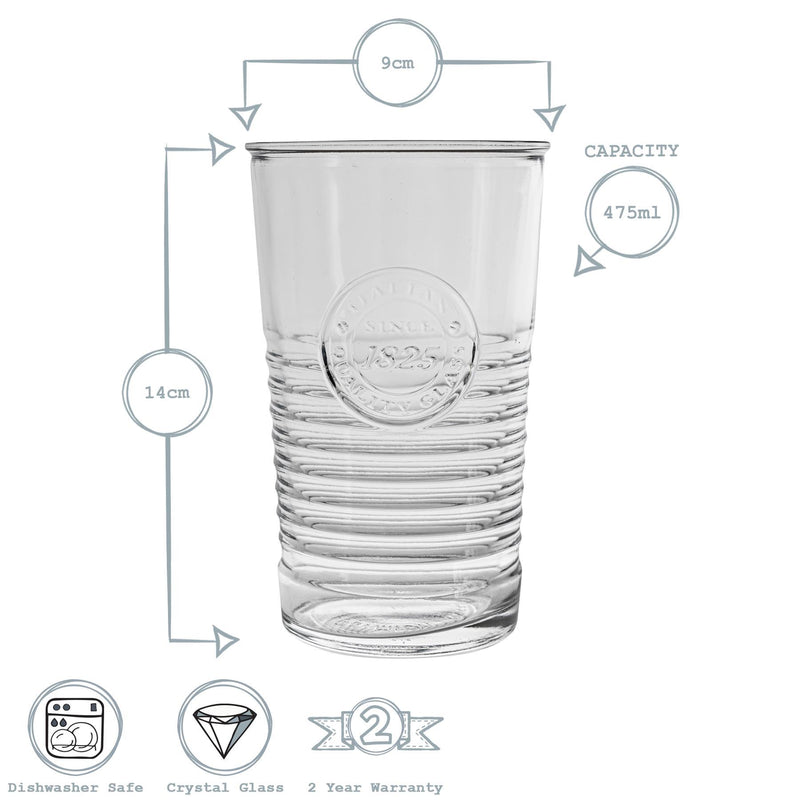 Bormioli Rocco Officina 1825 Highball Glasses - 475ml - Pack of 6
