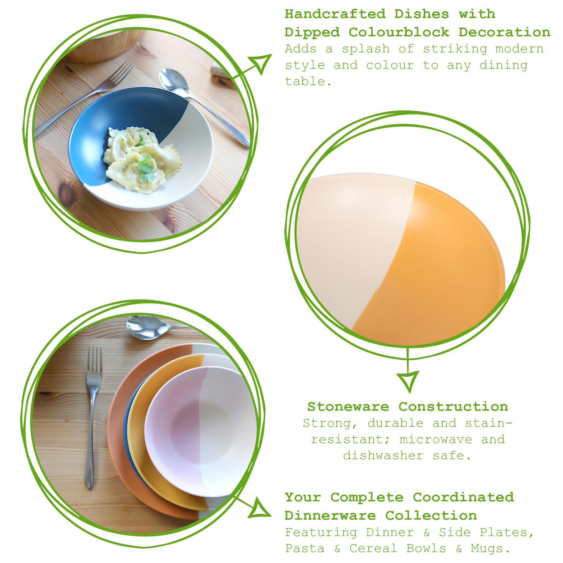 Handcrafted Dishes with Dipped Colourblock Decoration - Adds a splash of striking modern style and colour to any dining table