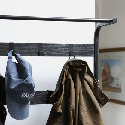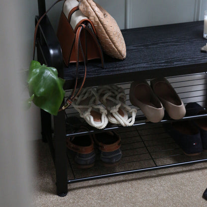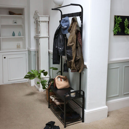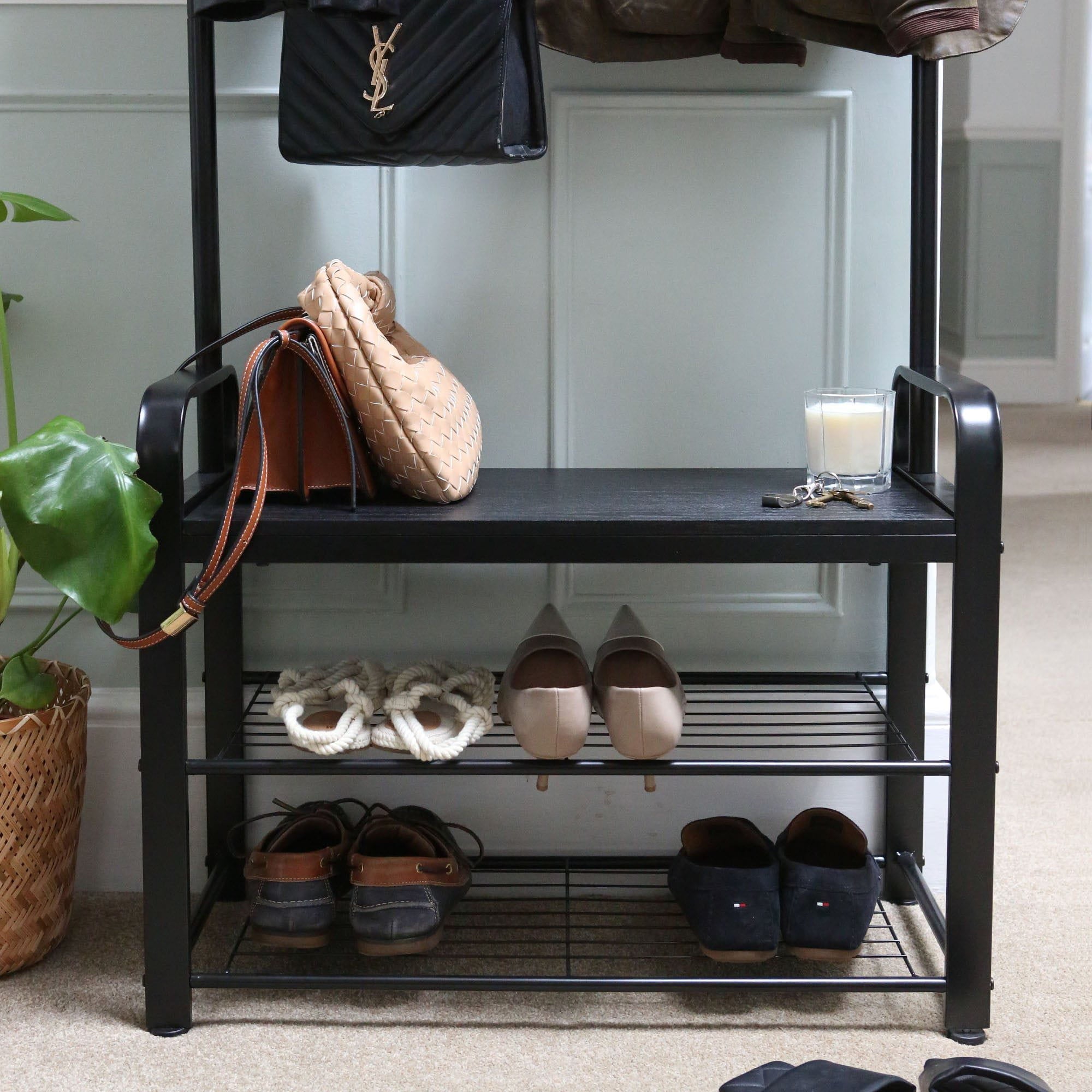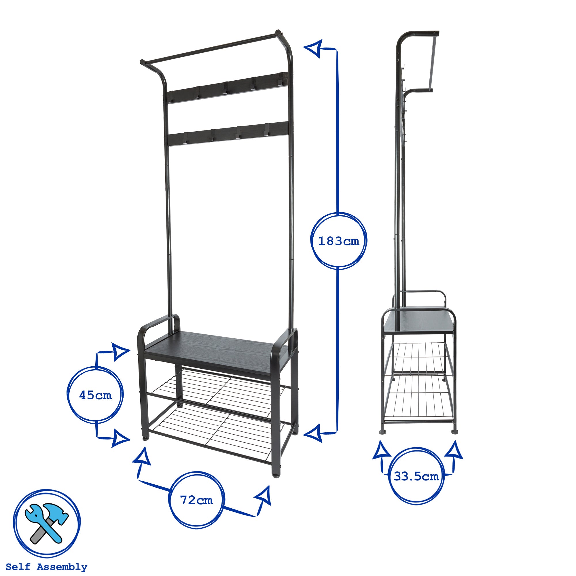 A series of nine sturdy metal hooks offers ample storage options for everybody's coats and jackets, while the MDF-topped storage bench lets you keep shoes and other footwear organised and out of the way.