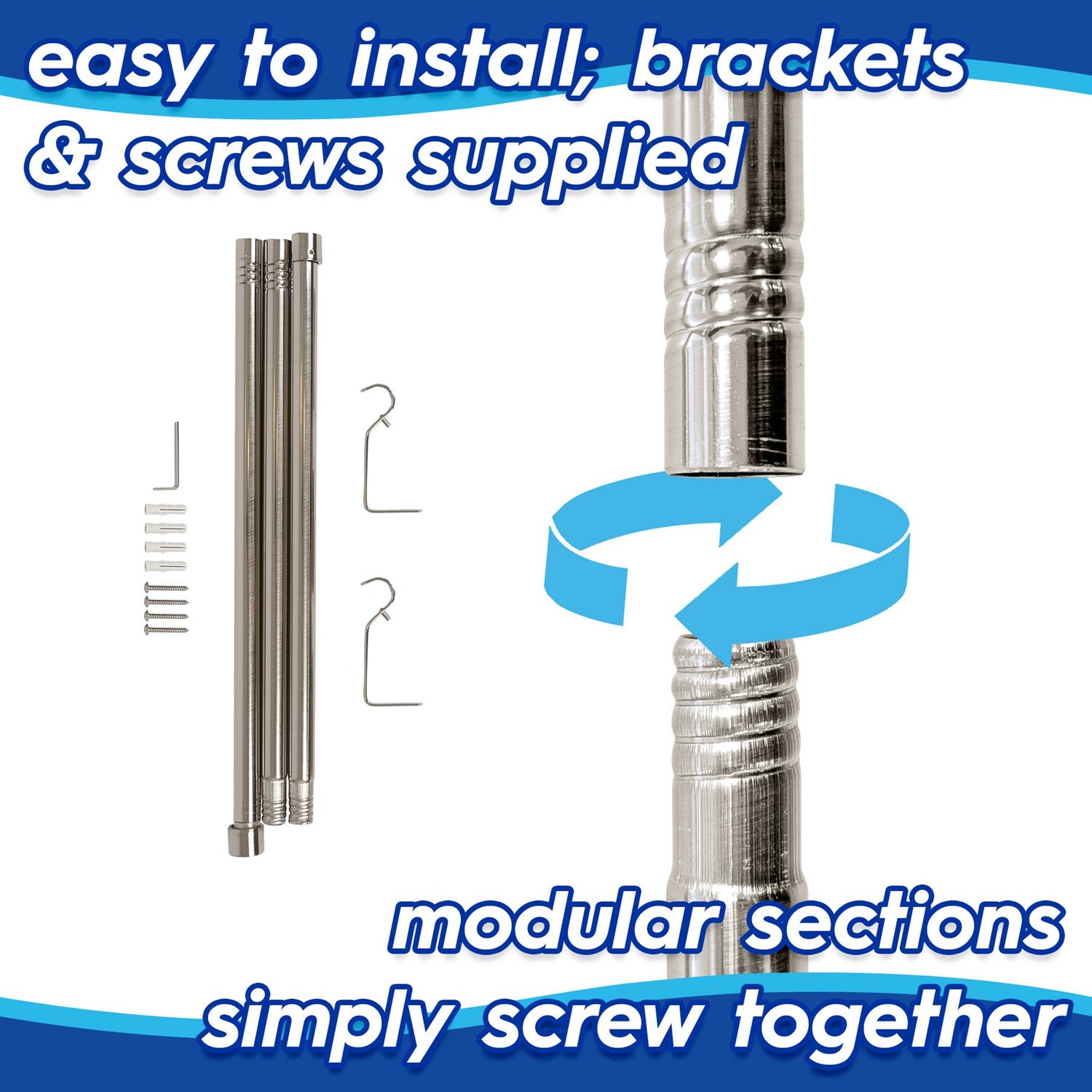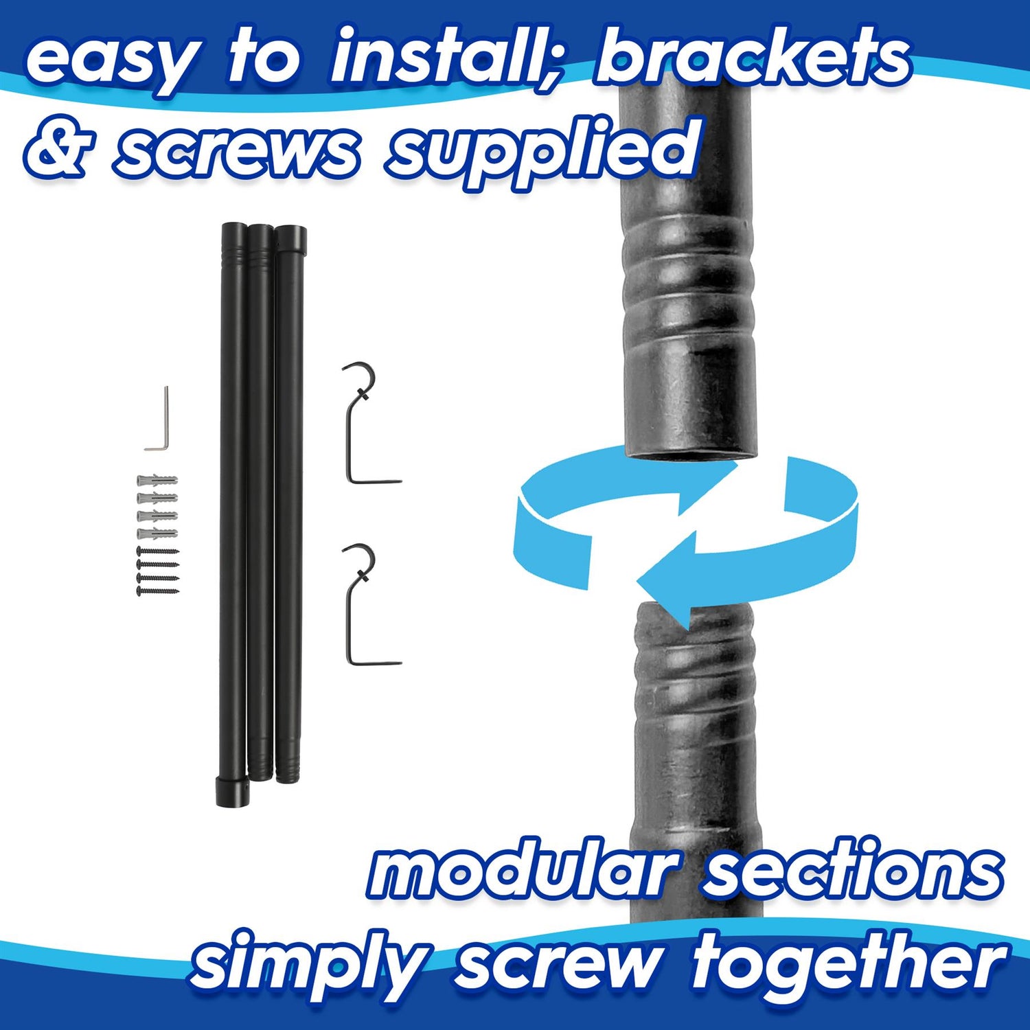 Easy to Install - Comes with brackets, screws and wall plugs supplied; pole sections simply screw together with no additional tools required