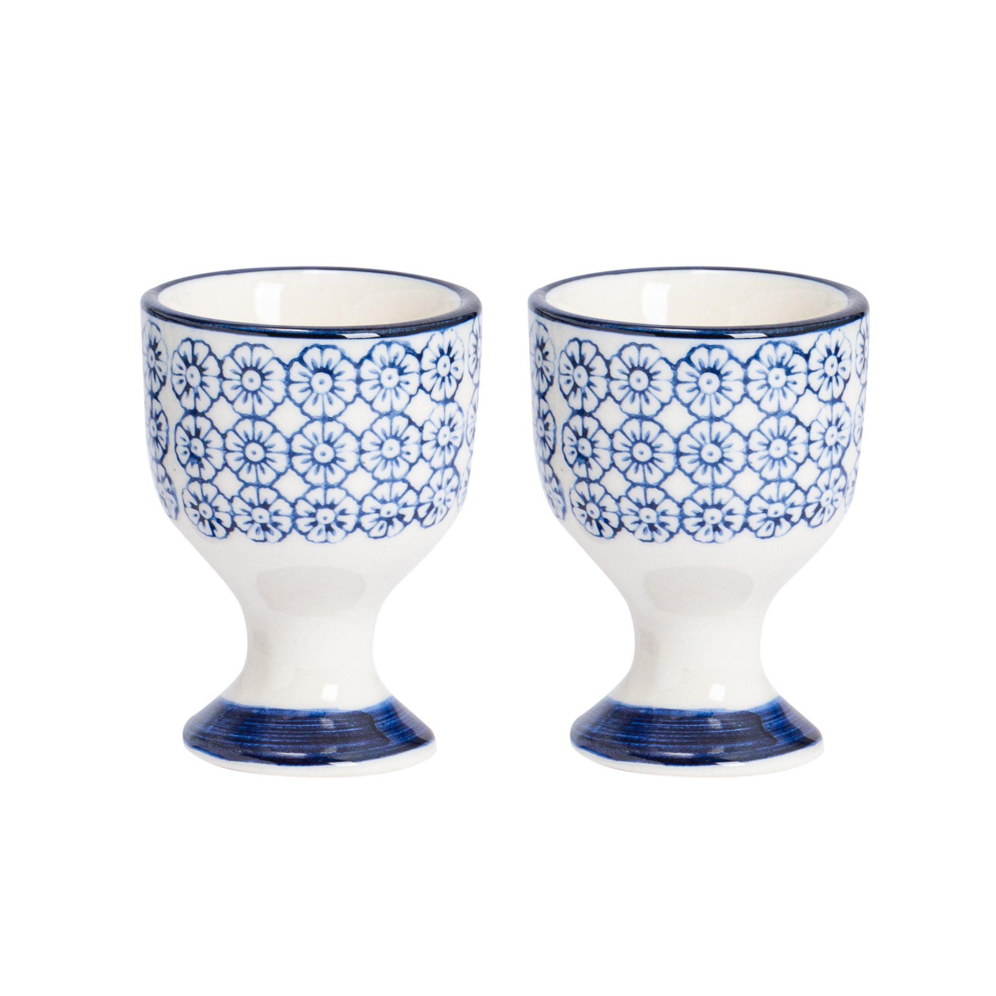 Floral Hand Printed Stoneware Egg Cups - Pack of Two