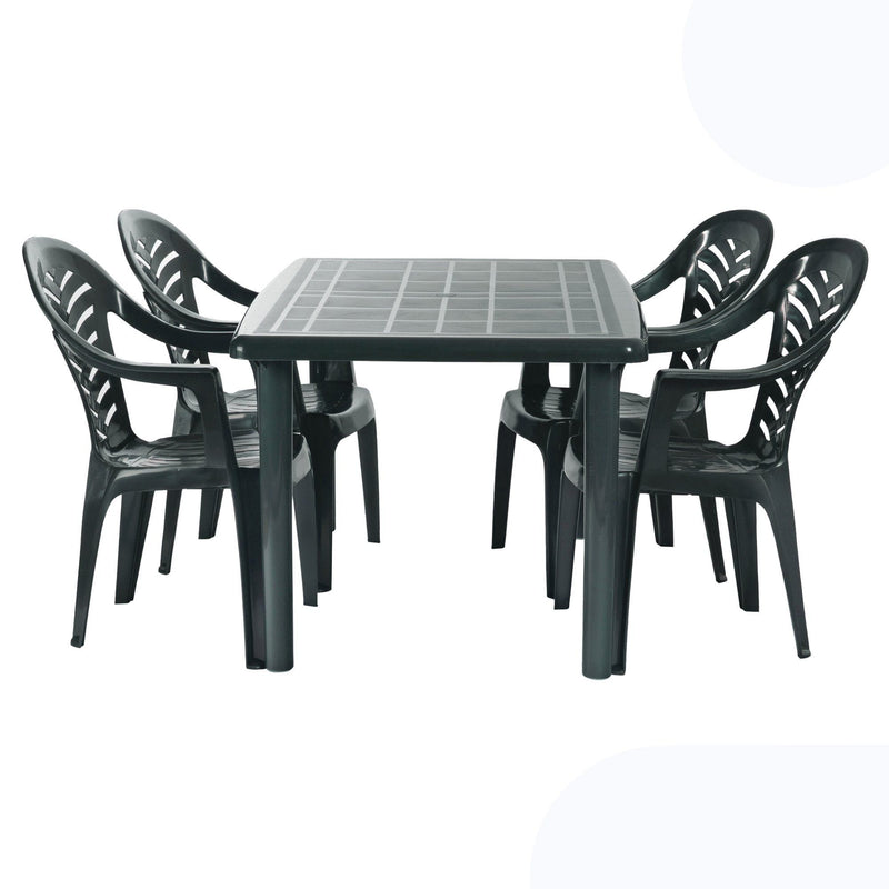 This set also includes four of our Palma Plastic Dining Chairs, providing you with the ultimate outdoor summer barbecue / garden party set up.