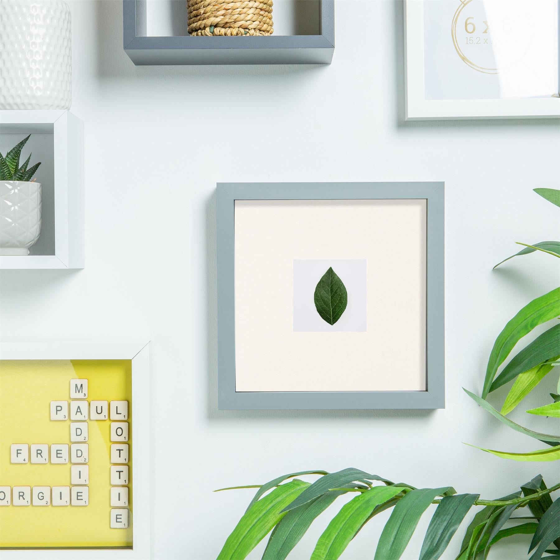 Grey 6" x 6" 3D Box Photo Frame with 2" x 2" Mount