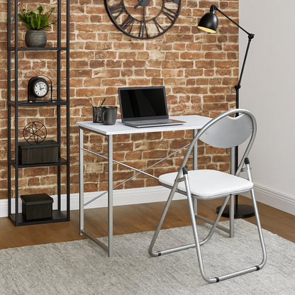 A tubular steel frame provides the optimum balance of lightness and durability; easy to move and reposition, yet strong enough to stand through countless late-night cramming sessions! The robust wooden worktop offers ample room for a laptop, sketchbook, workbook or monitor, with a classic melamine facing that lends a premium contemporary finish.
